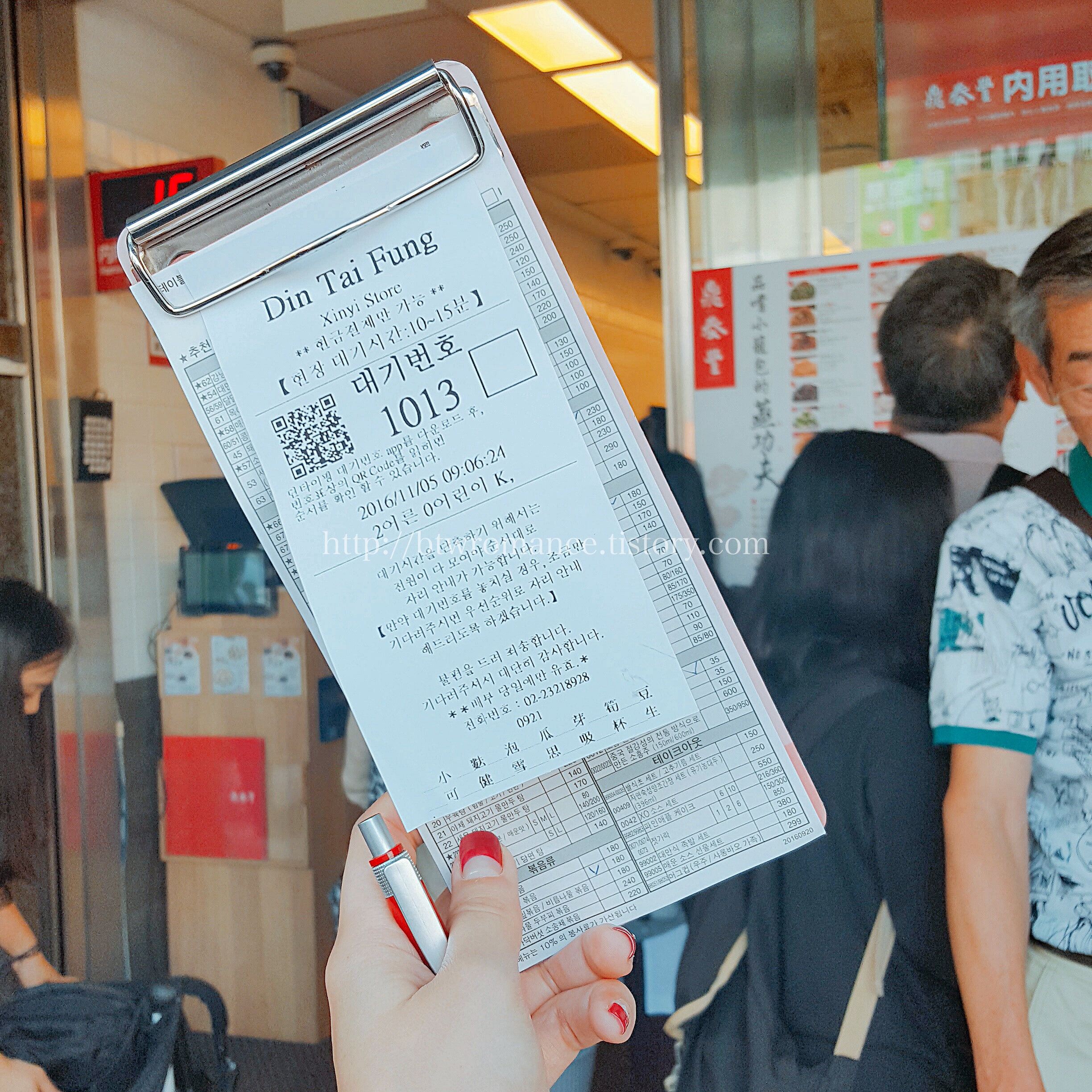 한국어로 뽑아준 대기표, 한국어 주문표까지 여행자에 대한 배려가 넘쳤던 딘타이펑.