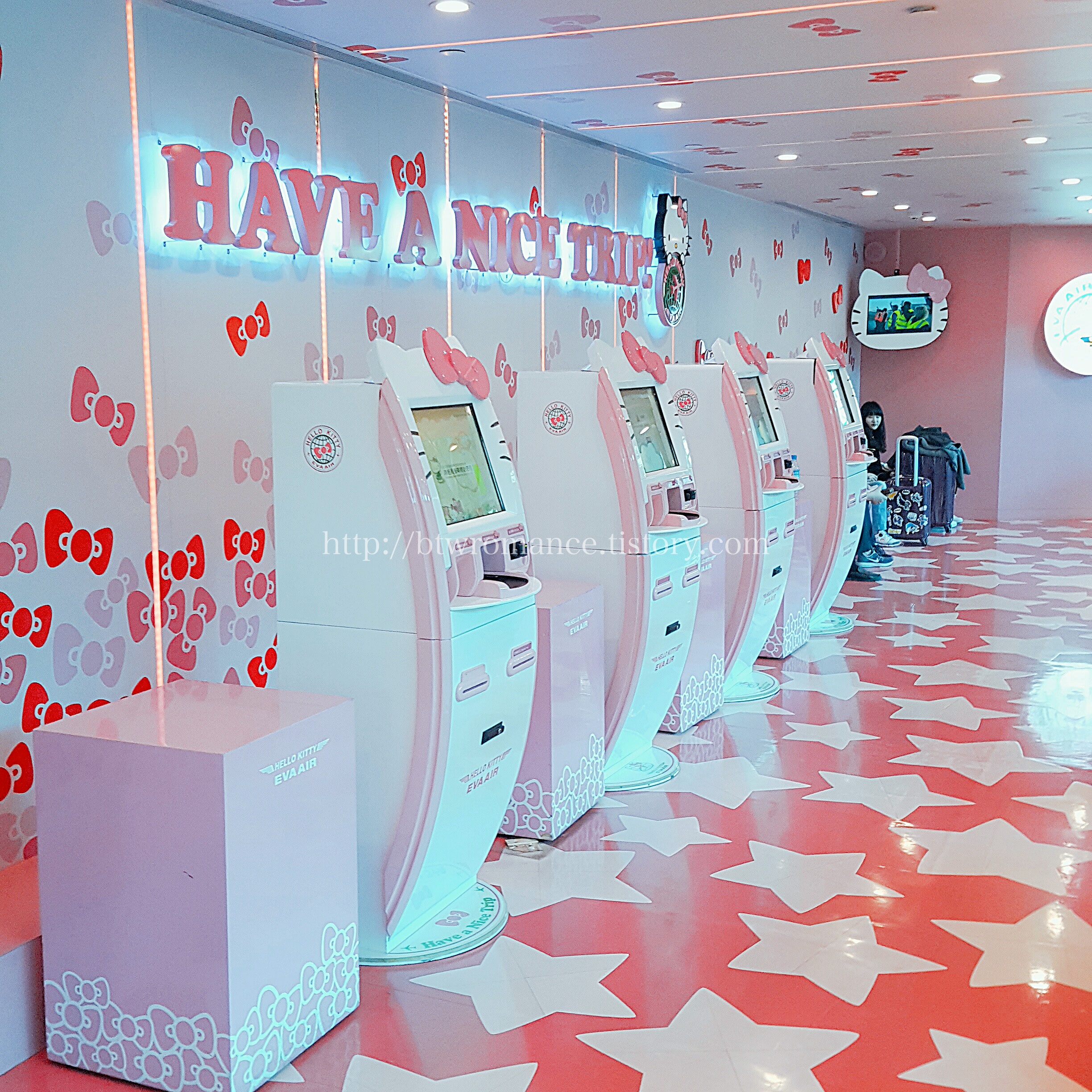 사진엔 없지만, 기내식 포크와 나이프도 핑크색, 심지어 화장실 휴지조차 헬로키티 캐릭터가 박혀있었다.