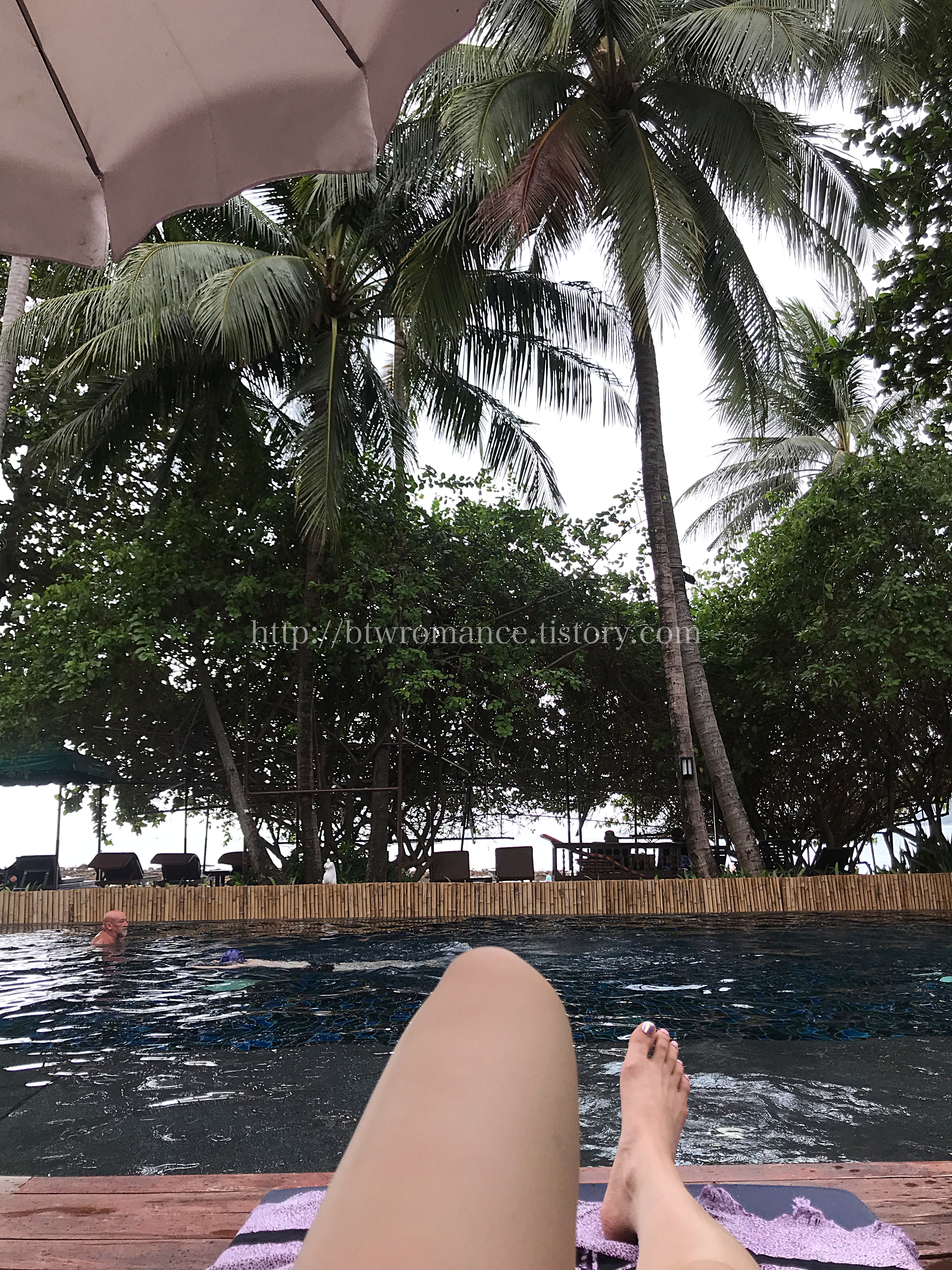 차웽비치에서 물놀이를 해도 되지만, 워낙 날이 흐리고, 발바닥에 모래 묻히기가 귀찮은 나머지 첫째 날은 이렇게 바닷소리가 들리는 리조트 수영장에서 물놀이하며 쉬며 시간을 보냈다.