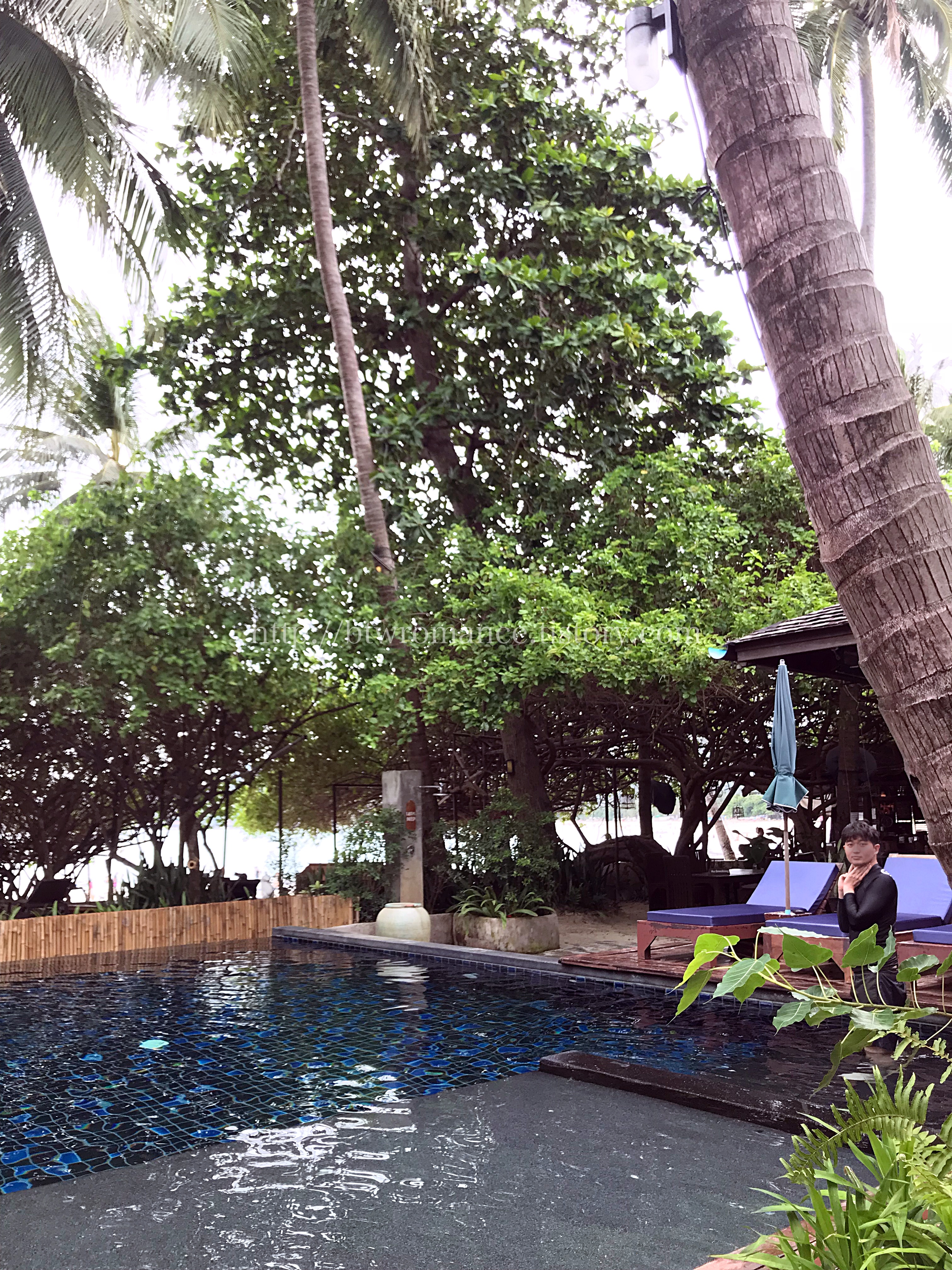 차웽비치에서 물놀이를 해도 되지만, 워낙 날이 흐리고, 발바닥에 모래 묻히기가 귀찮은 나머지 첫째 날은 이렇게 바닷소리가 들리는 리조트 수영장에서 물놀이하며 쉬며 시간을 보냈다.