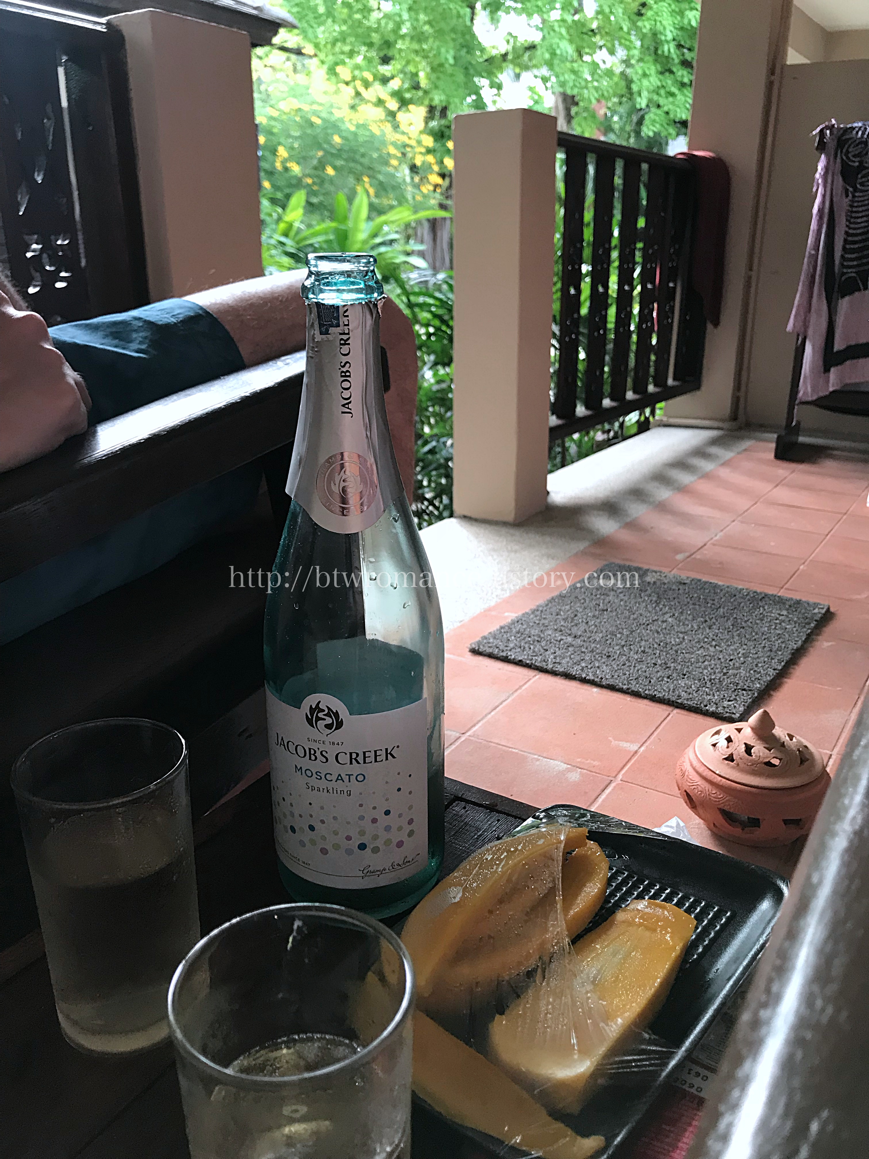 우리는 이곳에서 망고와, 슈퍼에서 달달한 스파클링 와인을 사서 리조트 방에 딸린 테라스? 에서 먹기로 했다.
