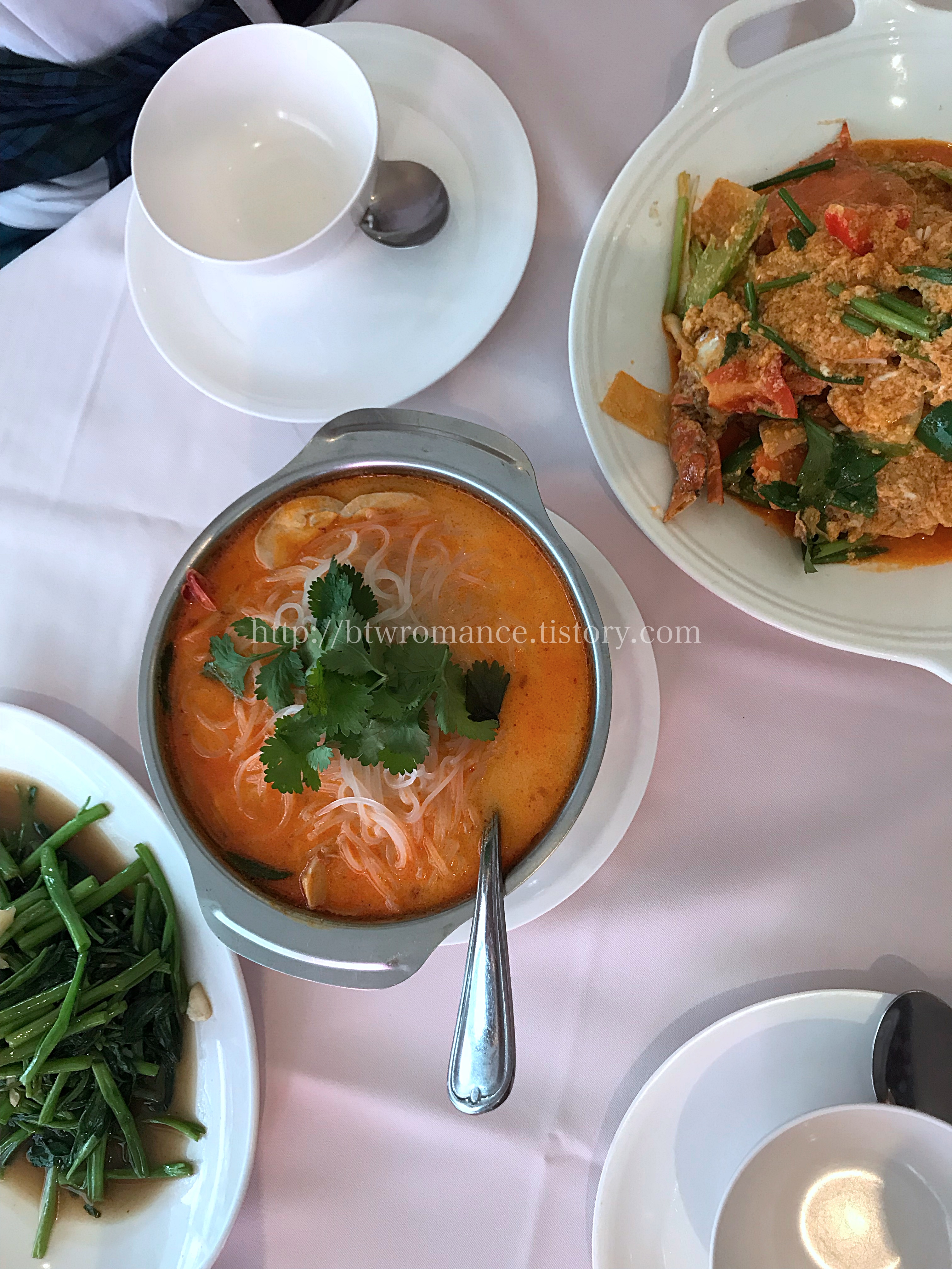 오늘은 볶음밥과, 똠양꿍+누들 공심채, 뿌빳뽕카리(게커리)를 먹었다.