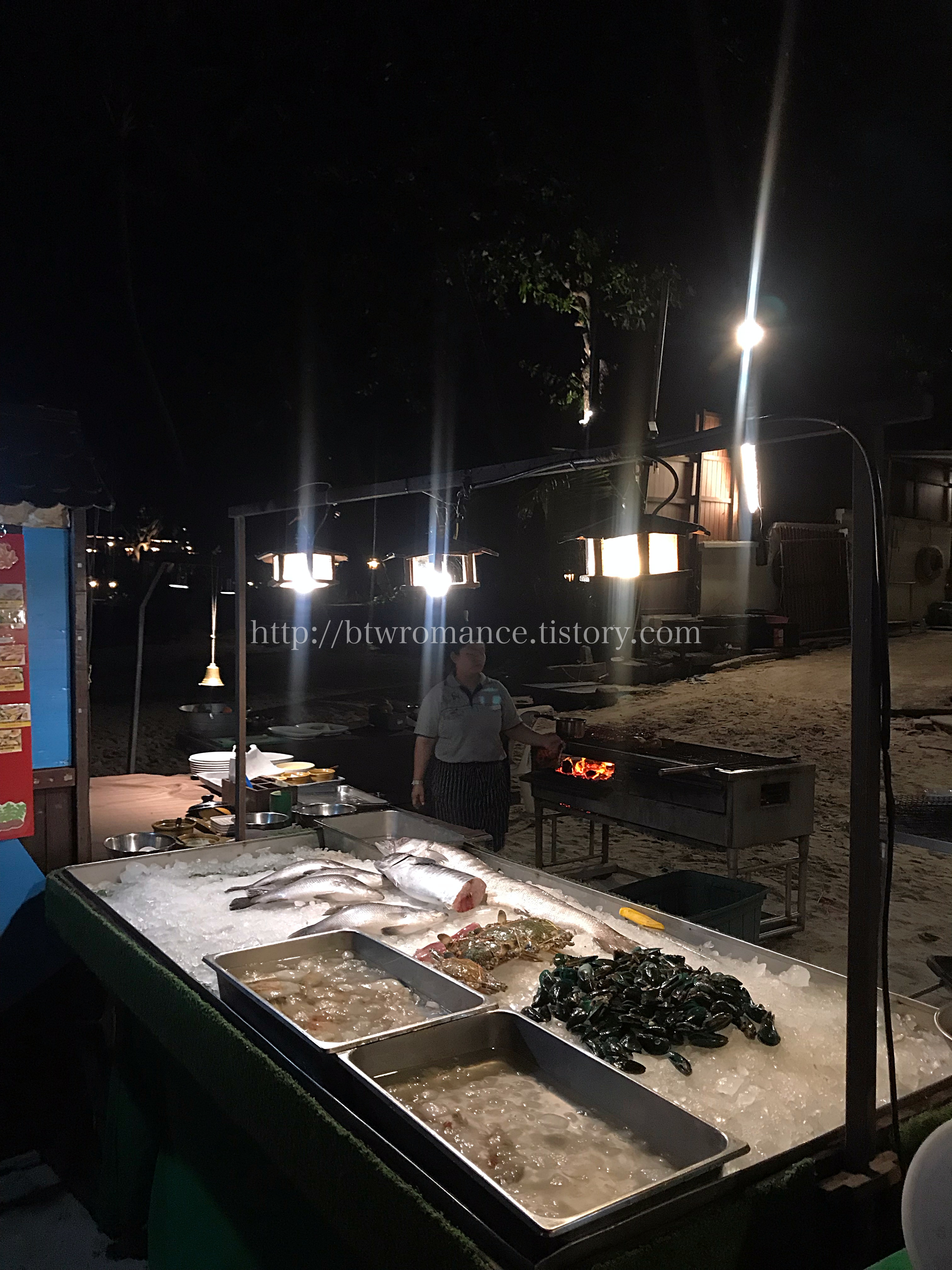 바람은 좀 불었지만, 파도소리에 기분내기 좋은 야외 바베큐 식당이었다.