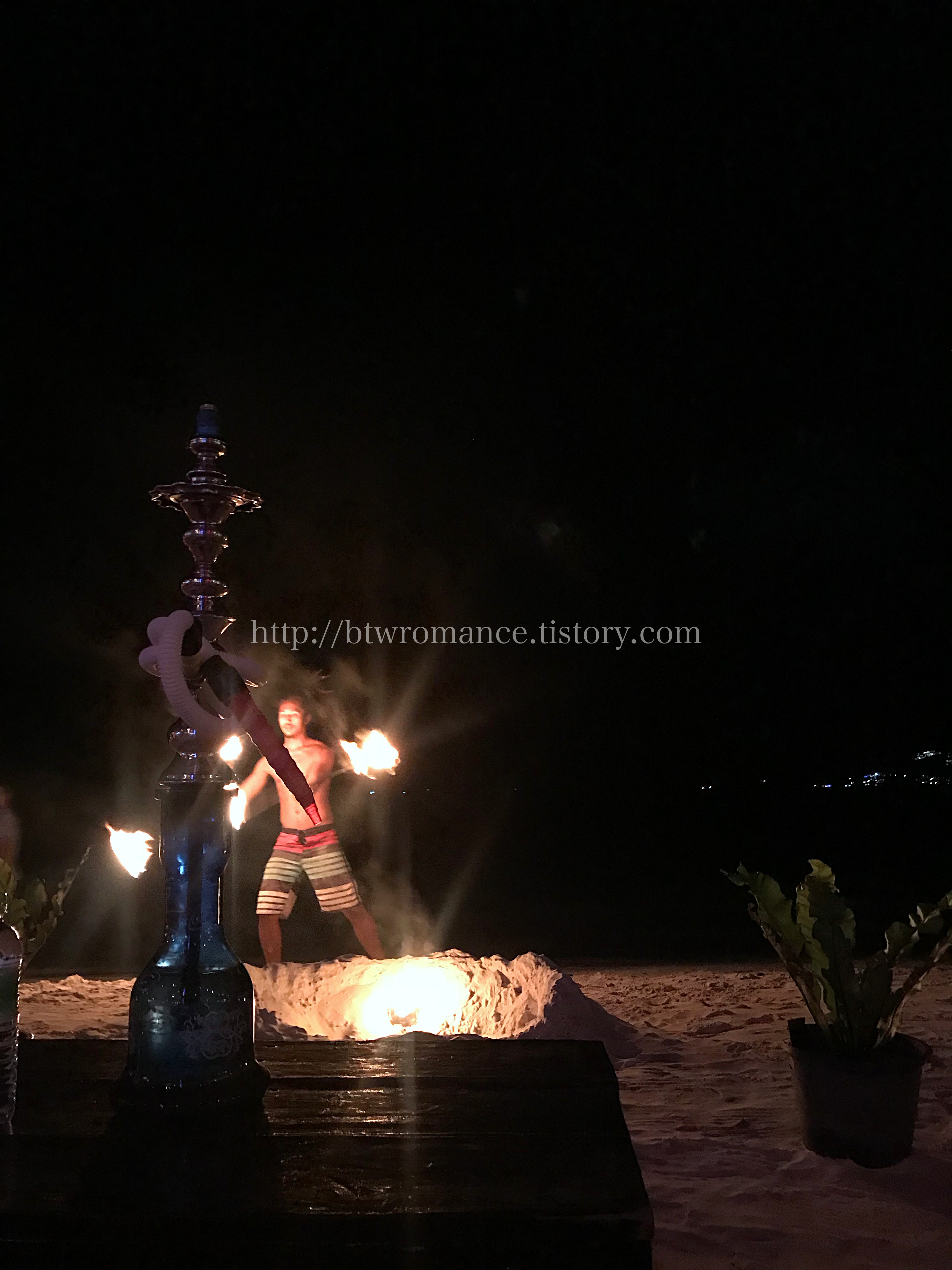시샤(물담배)를 하며 노래도 들으며 우리 앞에서 하는 불놀이도 구경하며 기분 좋게 시간을 보내던 그때,
