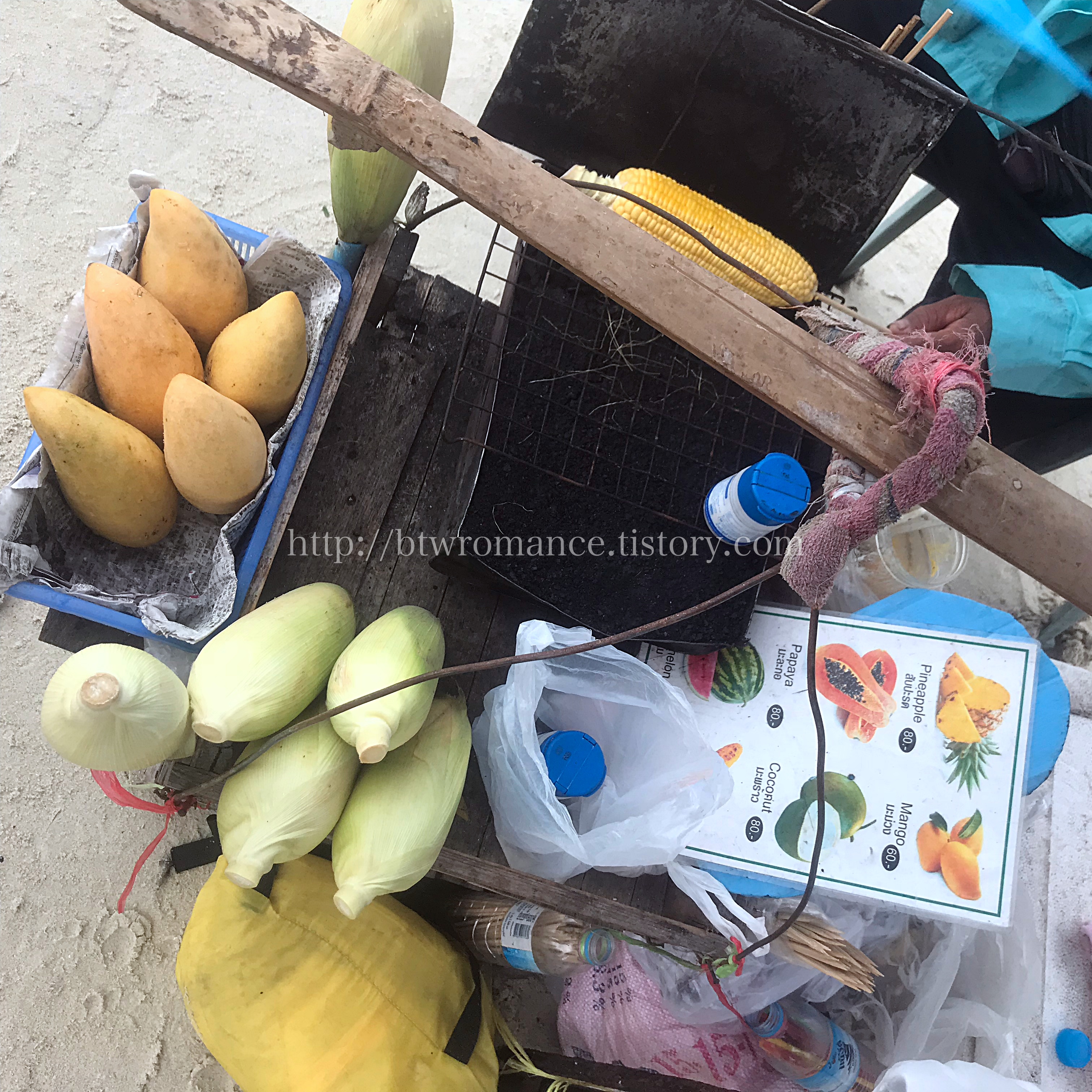 모래사장에서 파는 코코넛이랑 구운 옥수수를 사서 다시 리조트로 돌아가는 길에,