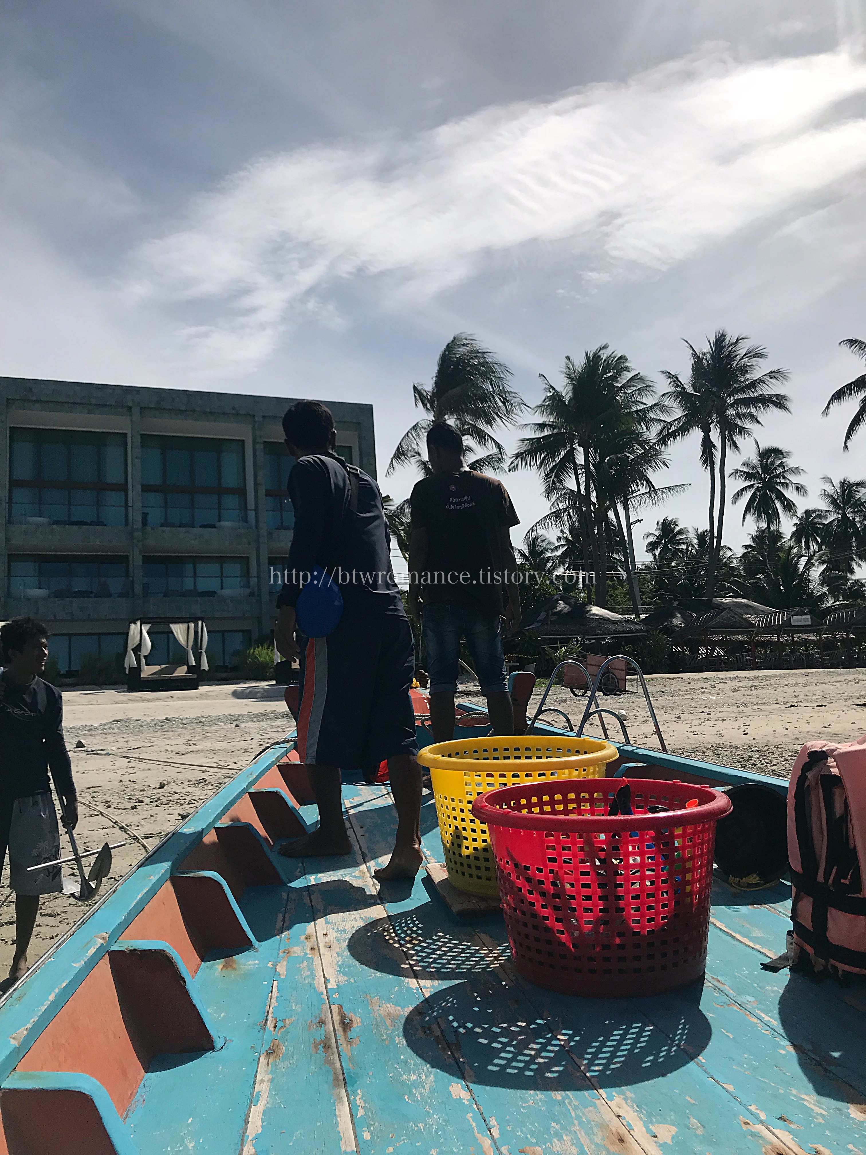 롱테일 보트는 동남아 지역에서 자주 보이는 배의 종류인데, 나무로 만든 기다란 배에 모터가 달려있는 모양이다.스노클링은 가족끼리 괌 여행에 갔을 때 아주 큰 보트를 타고 나가서 가이드가 바다에 쳐 둔 안전 망 안에서 했던 마지막 경험이 있어서,나무로 된 배를 타고 바다를 나간다니 처음엔 꽤나 당황스러웠다.
