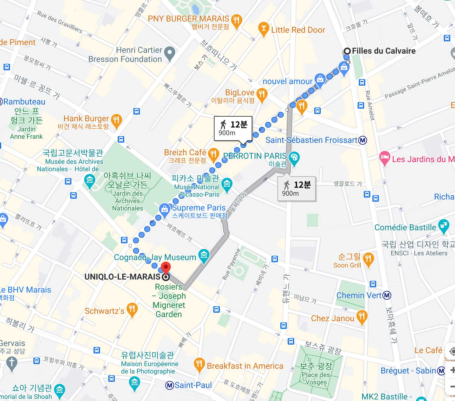 코끝이 시렸지만 익숙하면서도 색다른 마레지구에 오랫만에 와서 걷다보니 매우 기뻤다.