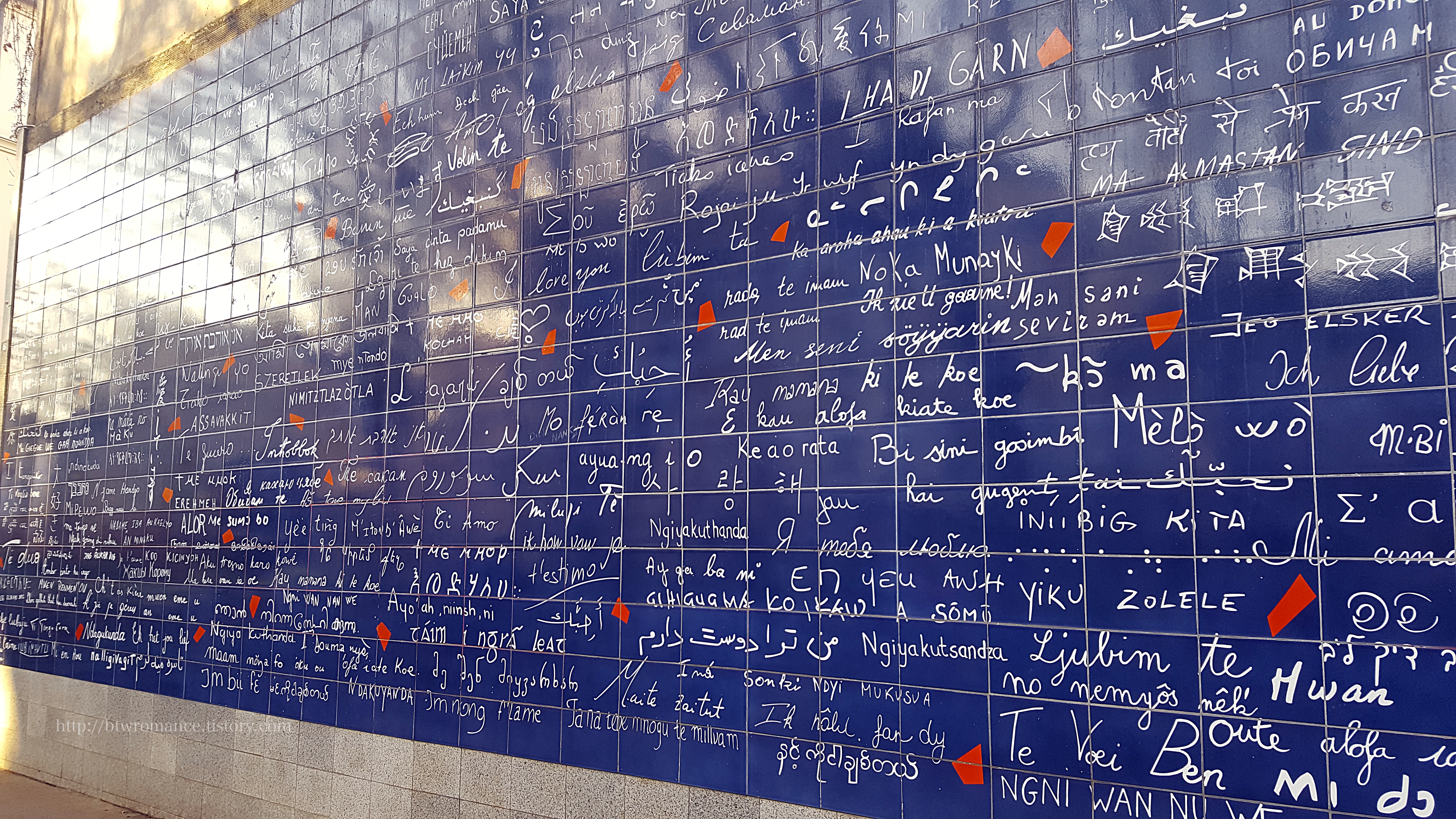 사랑의 벽은, 별거 아닌데, 몽마르뜨 언덕 근처에 전세계 언어로 사랑해가 써있는 벽이다.
