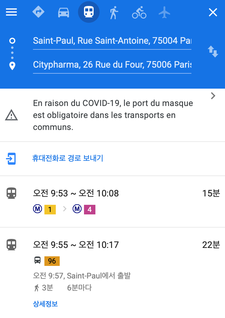 tip: 구글 지도에 경로를 찍으면 파리 시내 버스노선이 나와서 쉽게 탈 수 있다.