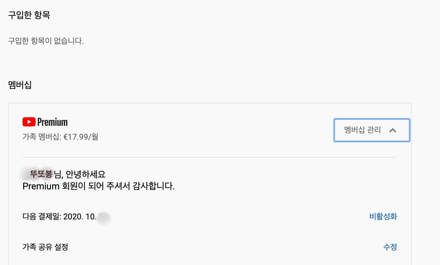 유튜브 뮤직 프리미엄 가족추가하는 방법