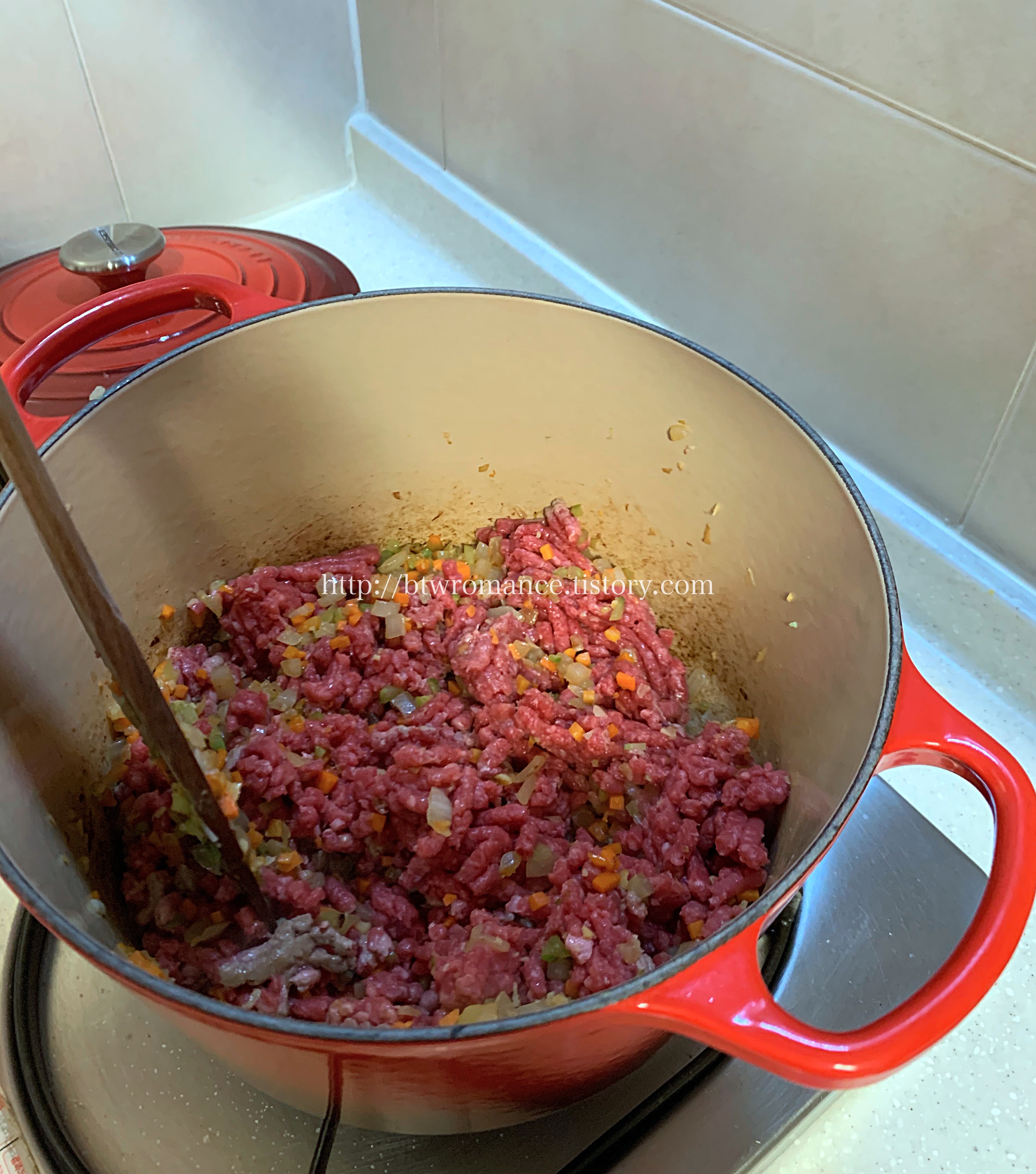 요즘 내가 즐겨하는요리 중 하나는 라구소스 인데, 이것에서 변형된것이 볼로네제파스타 ? 쉽게 말해서 간 고기가 들어가 있는 토마토소스이다.