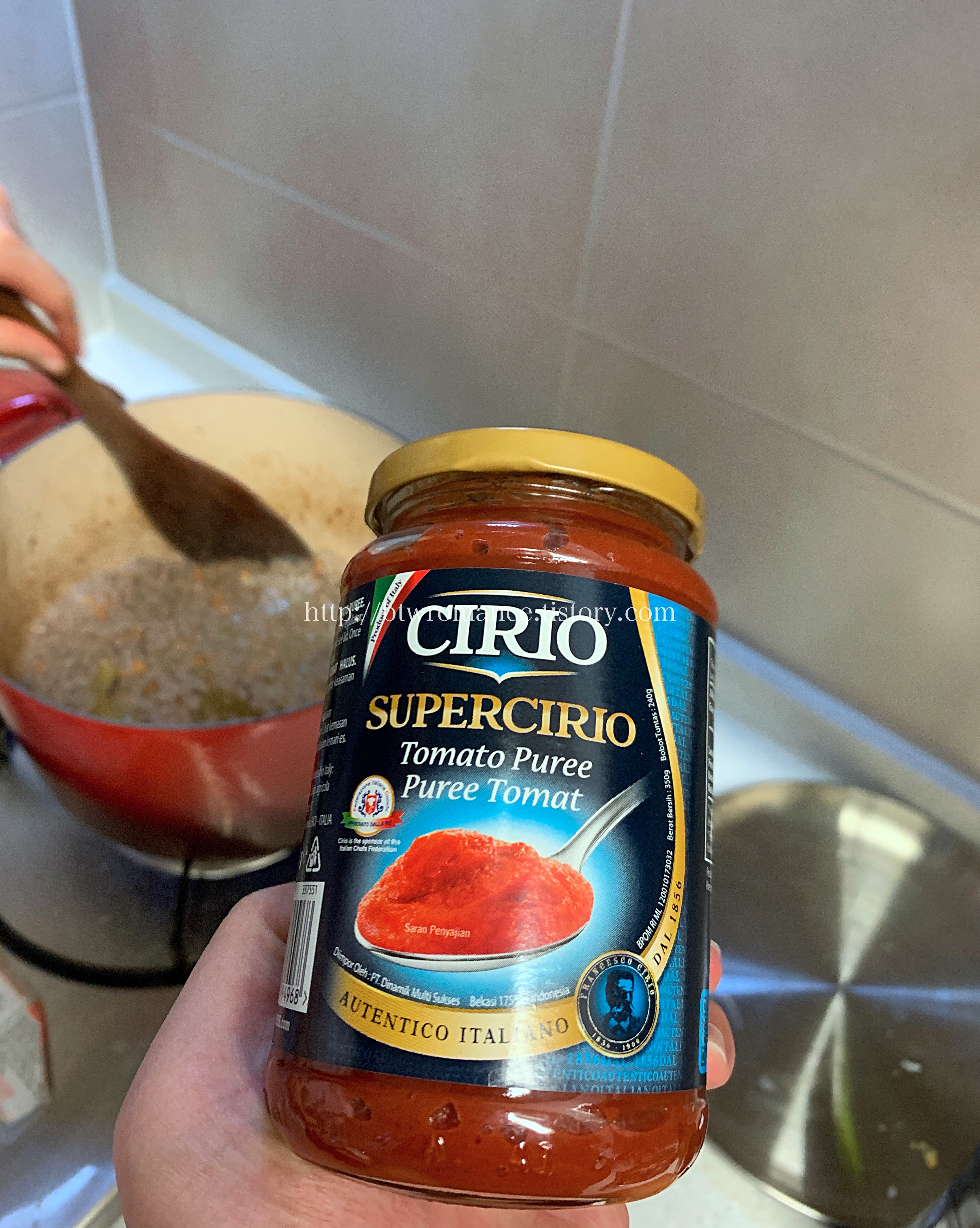 5. 토마토 페이스트(퓨레, 홀토마토) 를 넣어준다.