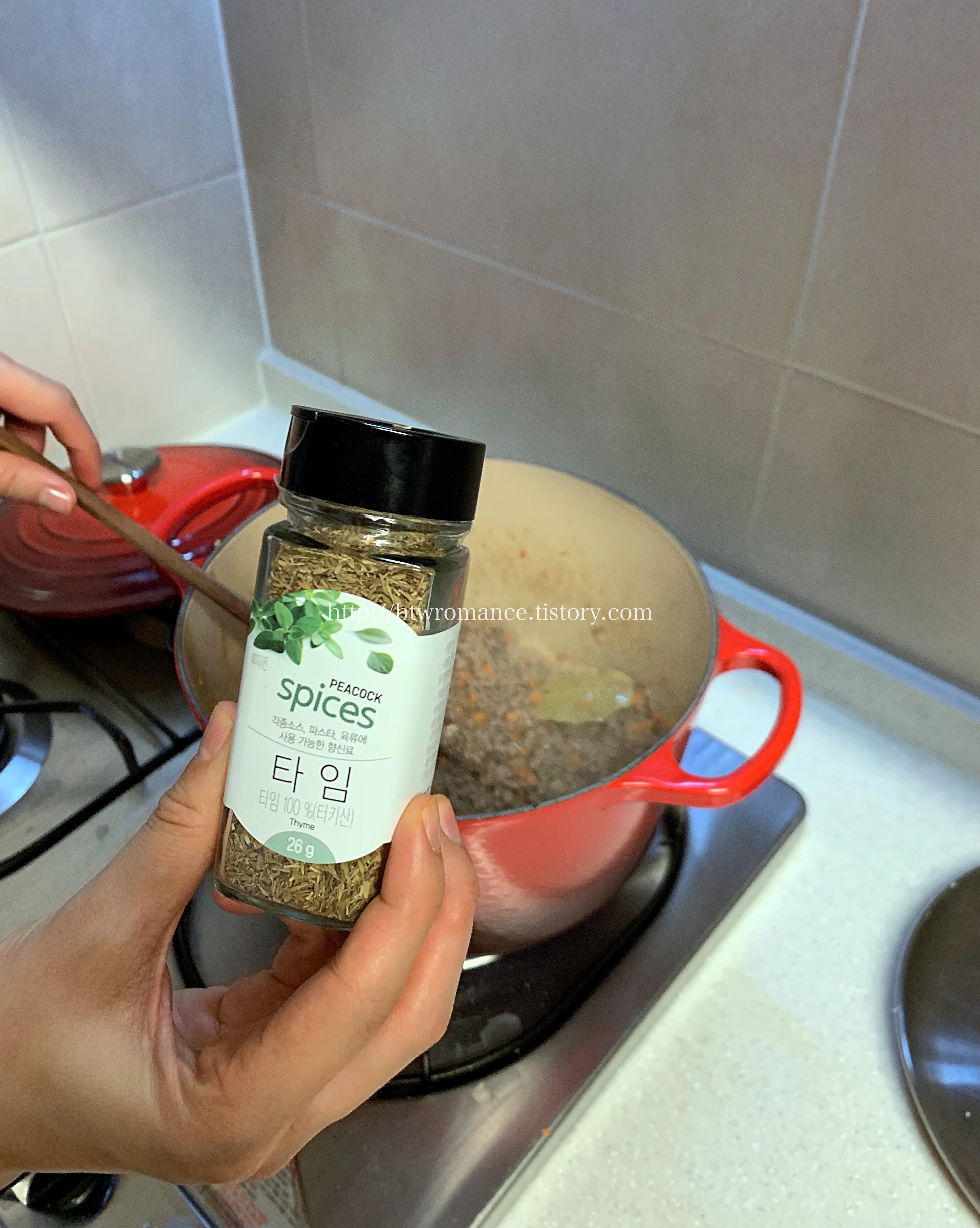 원래의 레시피 대로라면, 이 후 냄비채 오븐에 1시간? 정도 구워야하는데, 오븐이 없으므로 약불에 30분 정도 저어가며 끓였다.