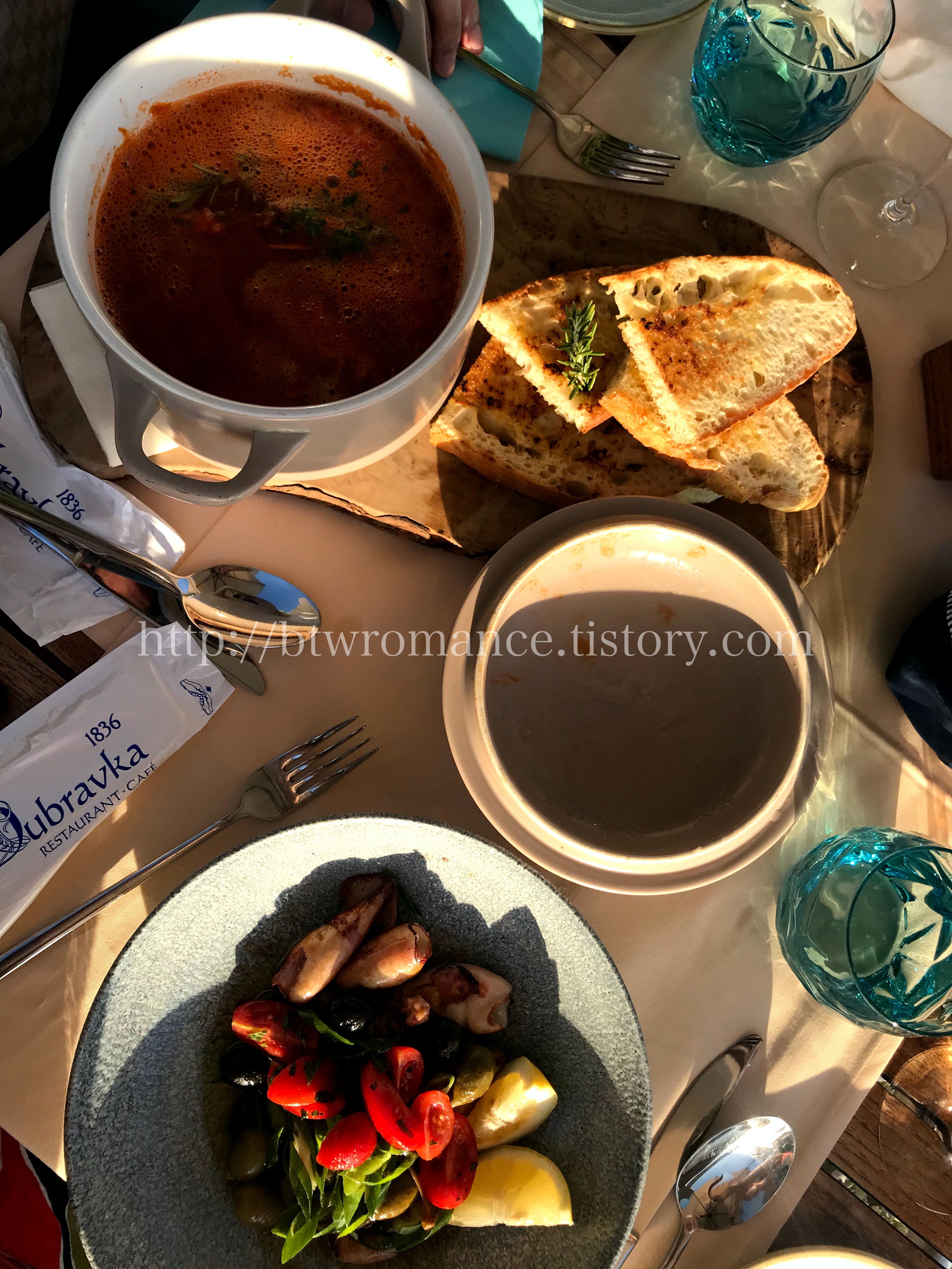 테이블을 저녁 6시부터 8시 반까지 예약했기 때문에, 해지는 모습의 아드리아해 풍경까지 볼 수 있었다.