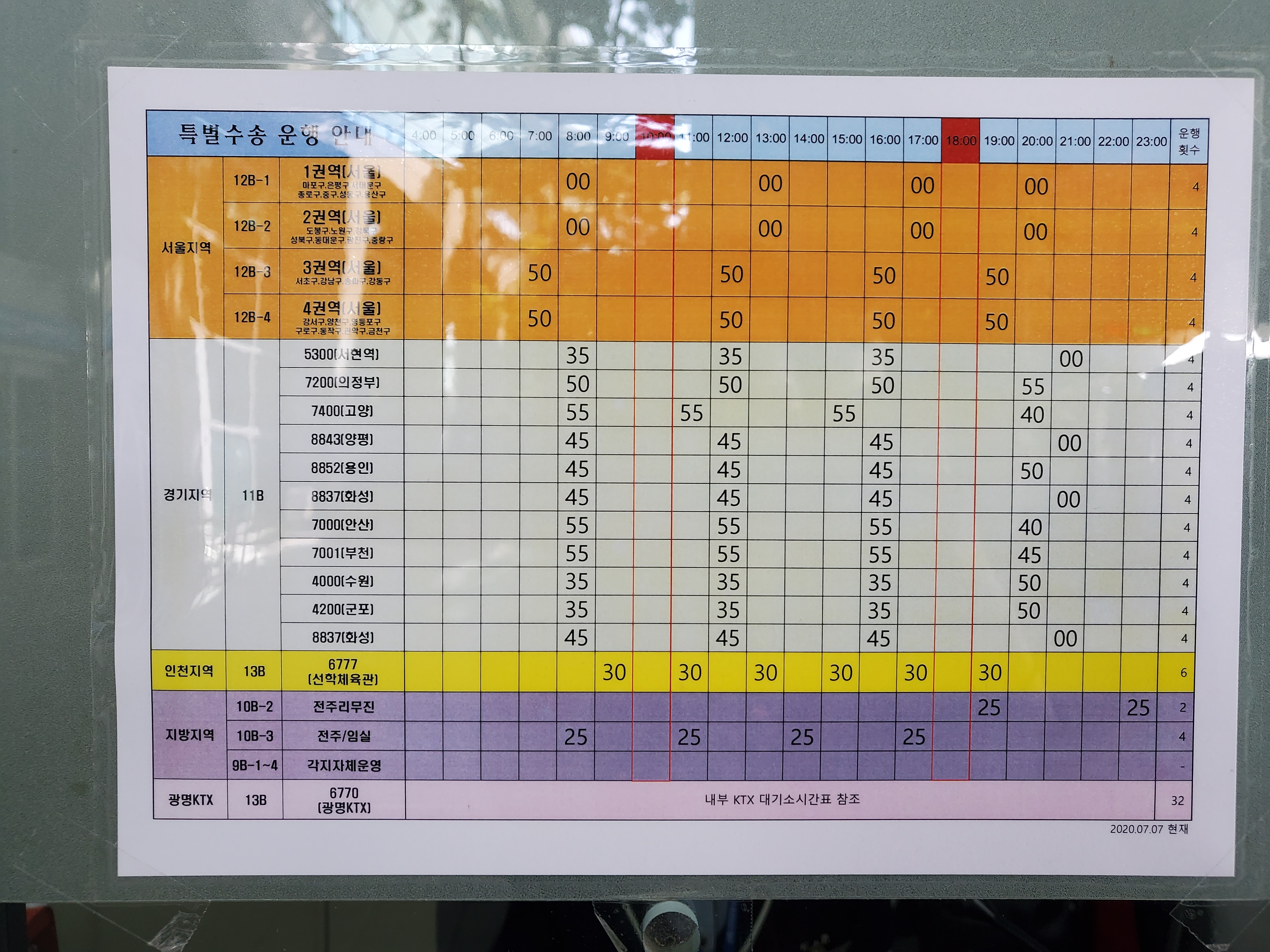 신기해서 찍은 도시별 수송 방법이랑 장소.