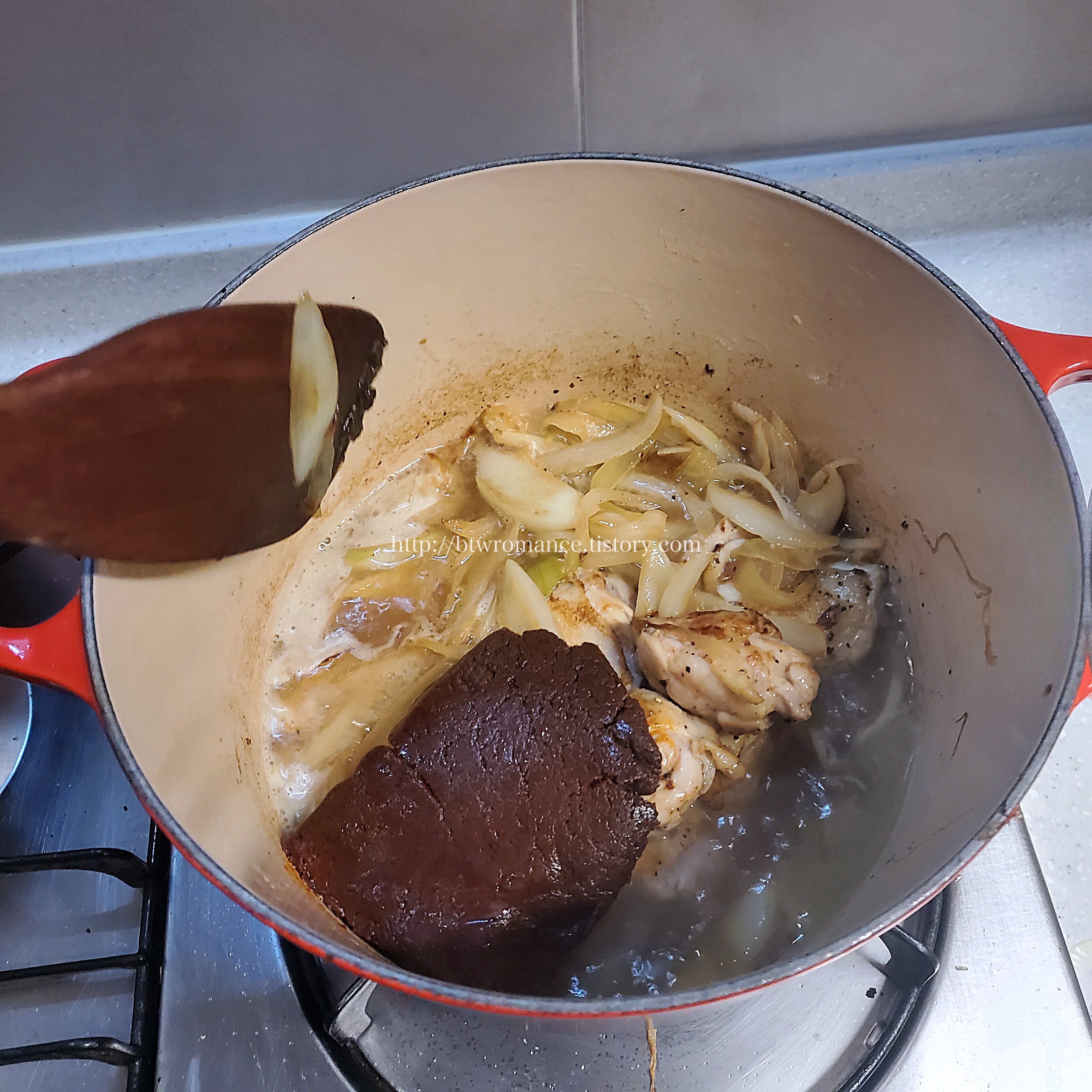 5. 커리 페이스트 1봉지(4인분) 을 넣고 20분 정도 약불에 끓여준다.