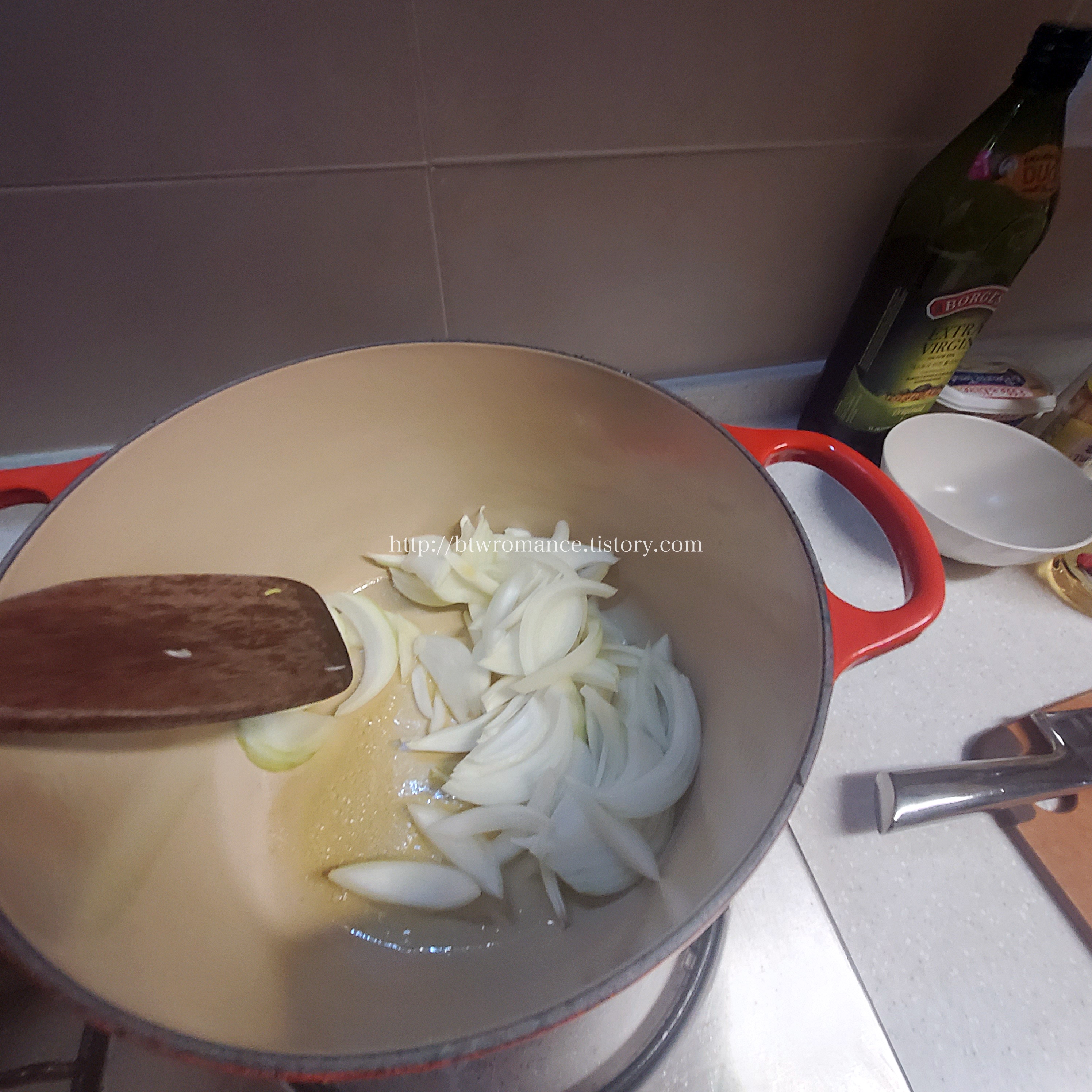 1. 냄비(혹은 깊은 후라이팬)에 버터와 오일을 적당히 두른다.