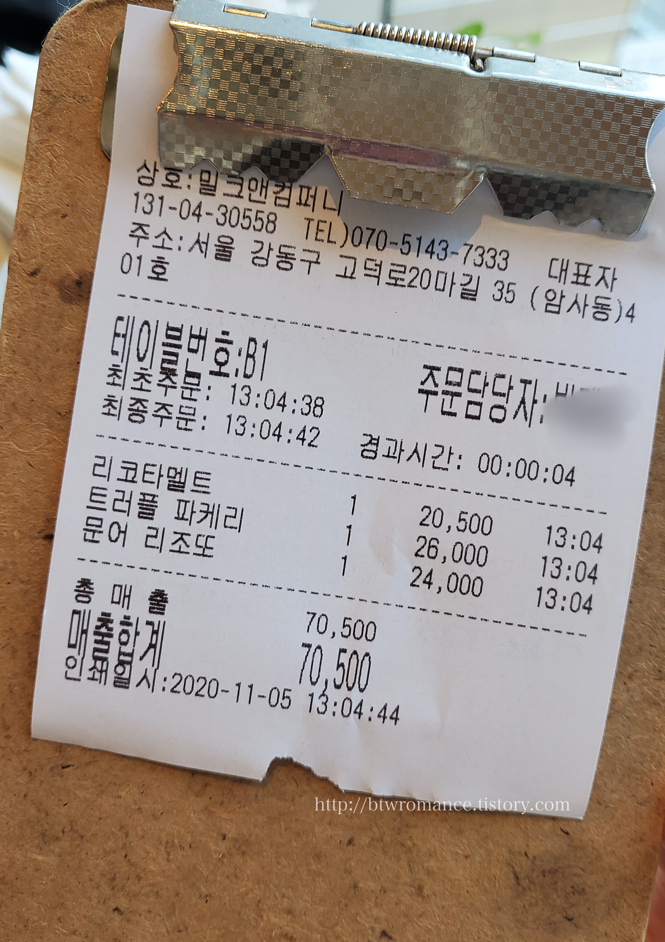 둘이 3개 메뉴를 먹고 총 70500원이 나왔다.