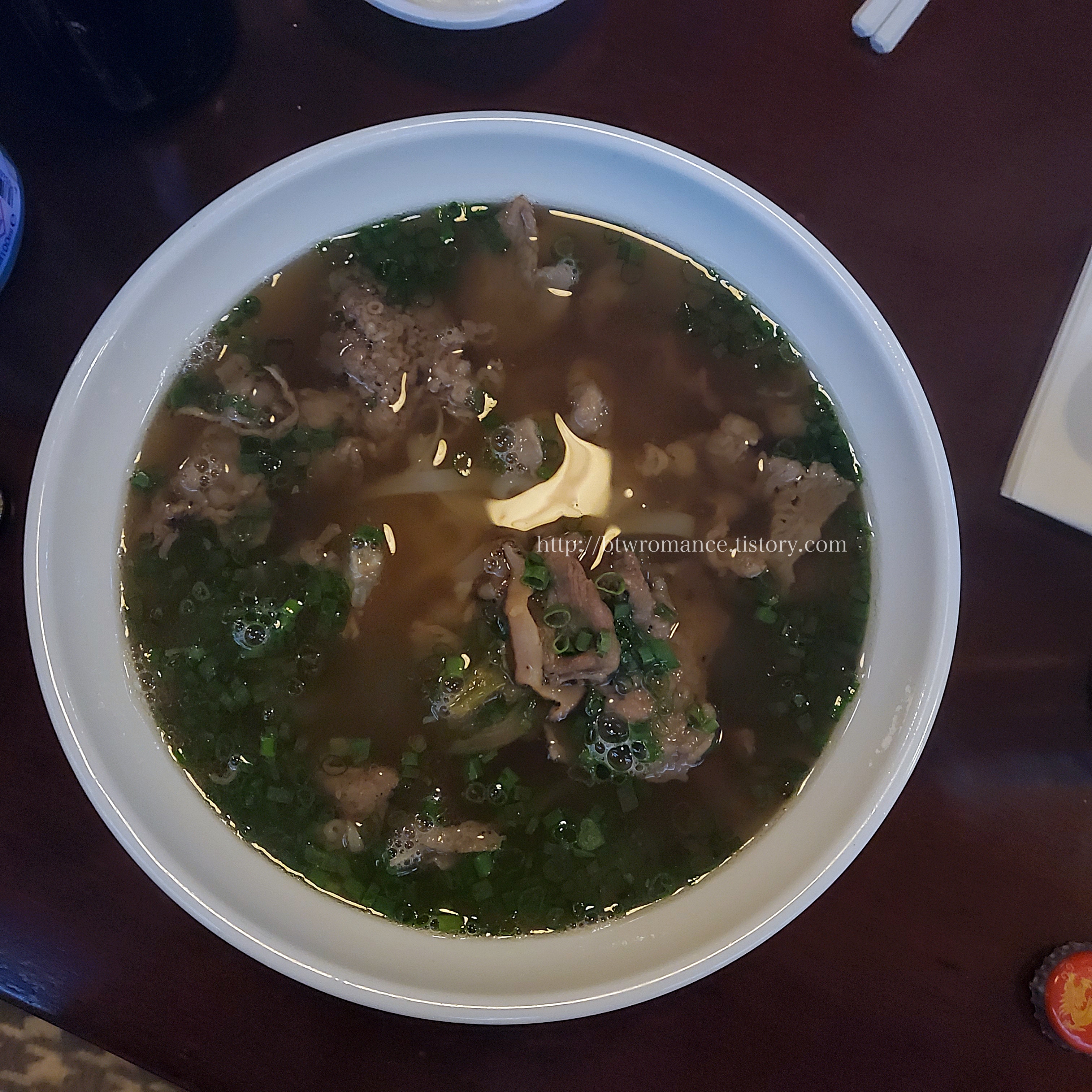 국물색이 다른 여타 쌀국수 집에 비해 많이 갈색 빛이 돈다. 맛은 달달한 갈비탕 맛이다.