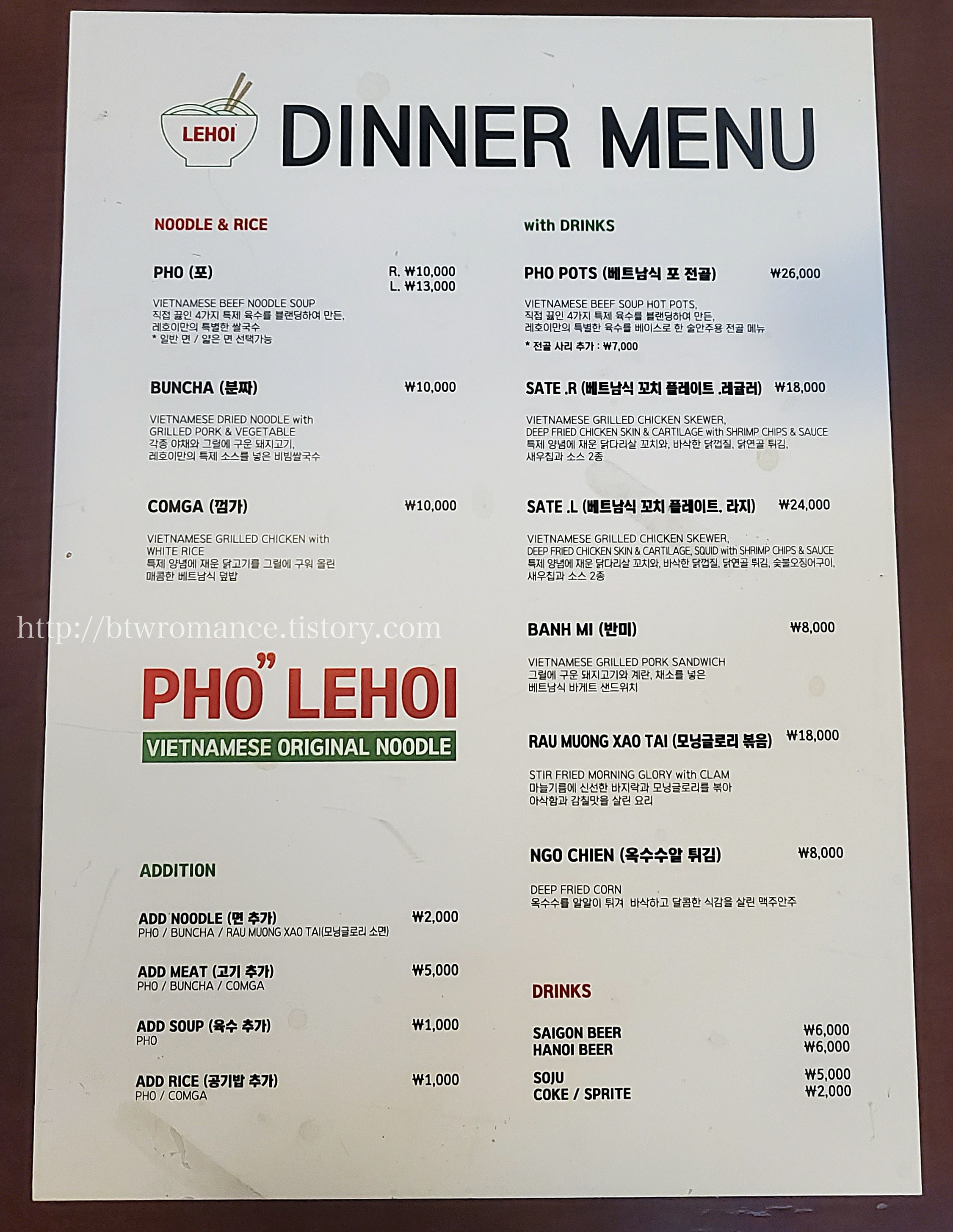 거의 뭐 외관만 보면 파리 14구의 유명 베트남 쌀국수 집과 어깨를 나란히 할 정도.너무나 강렬한 외관에 자꾸 기억이 남아서 최근에 가로수길에 볼 일이 있어 가는 김에 쌀국수를 먹으러 갔다.