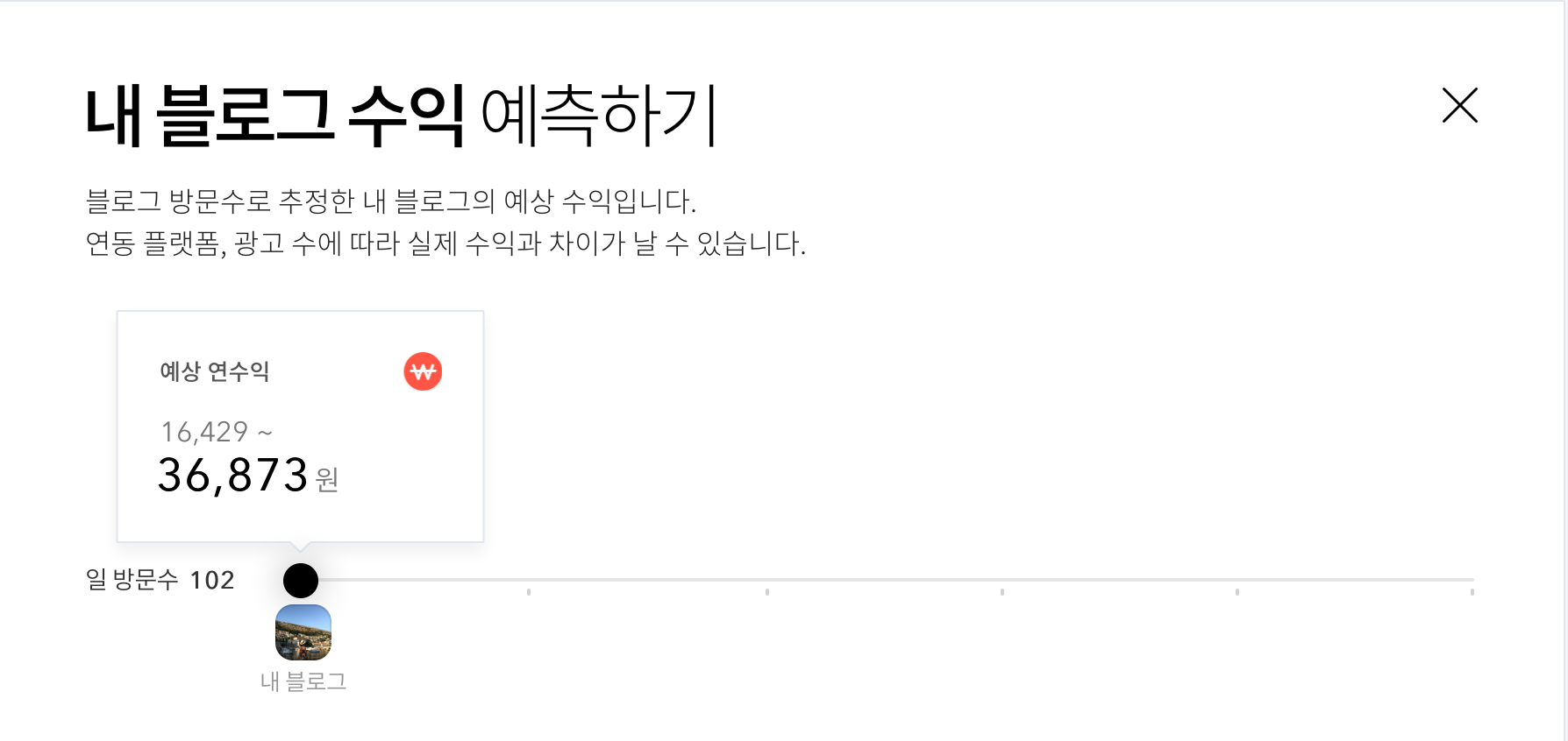 티스토리 수익 란에서 예측해주는 내 블로그의 1년 수익