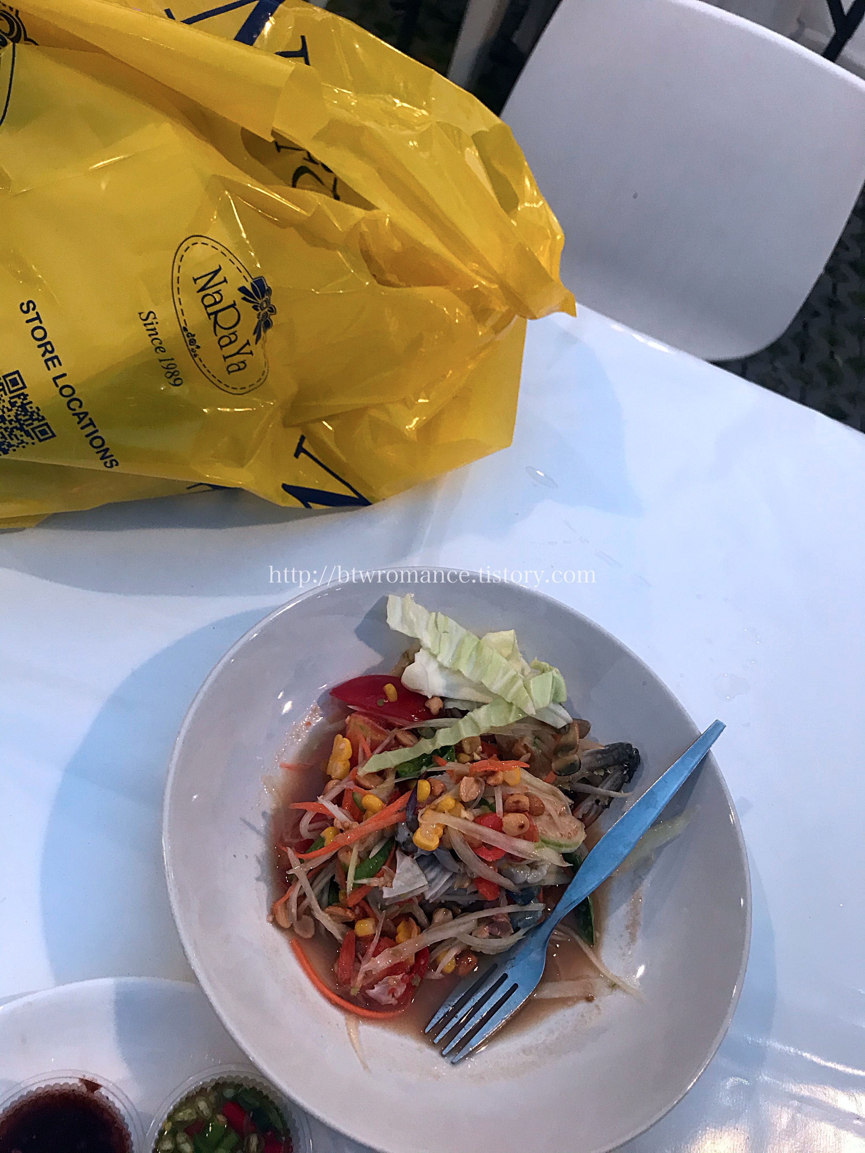 쏨땀 너무 맛있음. 한국인의 객기로 쏨땀 스파이시 ! 맵게 해달라그랬다간