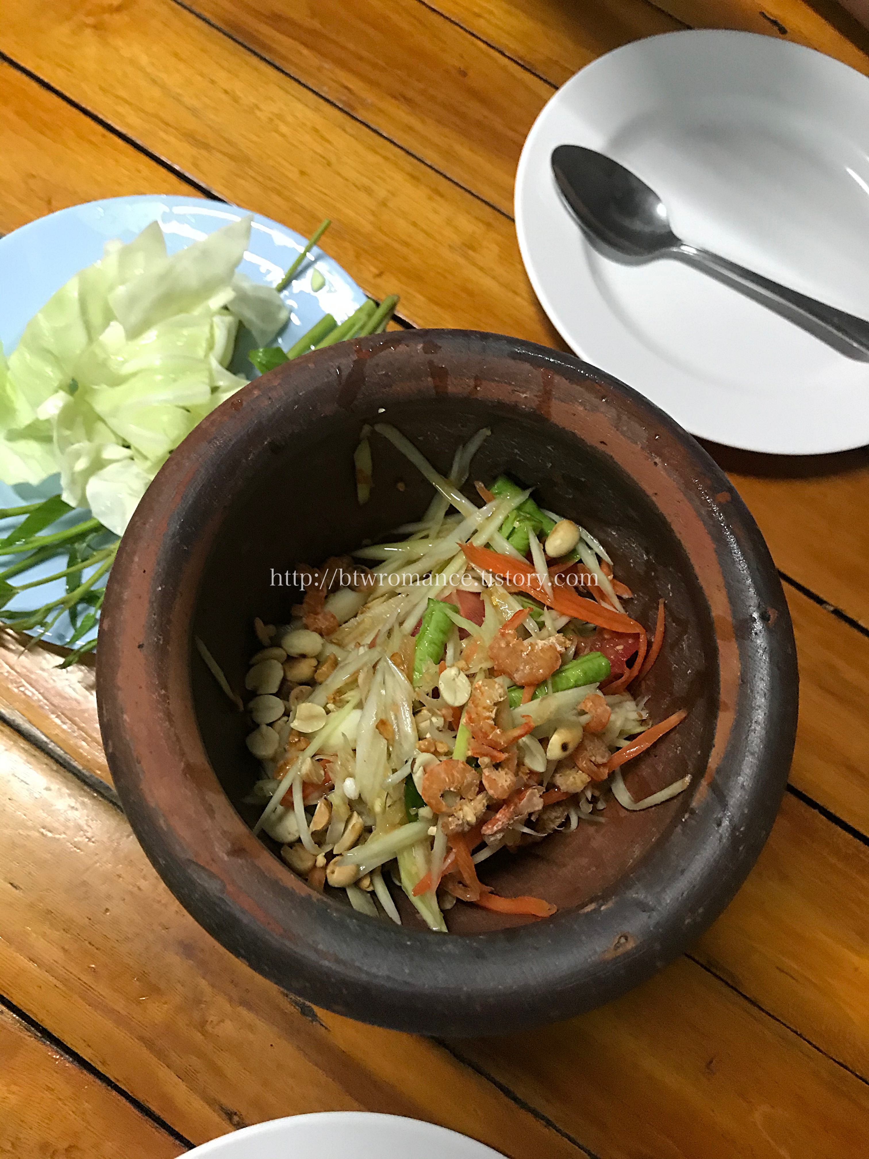 특히나 쏨땀은 이런 작은 절구 안에 나오는데, 그때그때 바로 만들어주시는데 신선함이 정말 좋다.