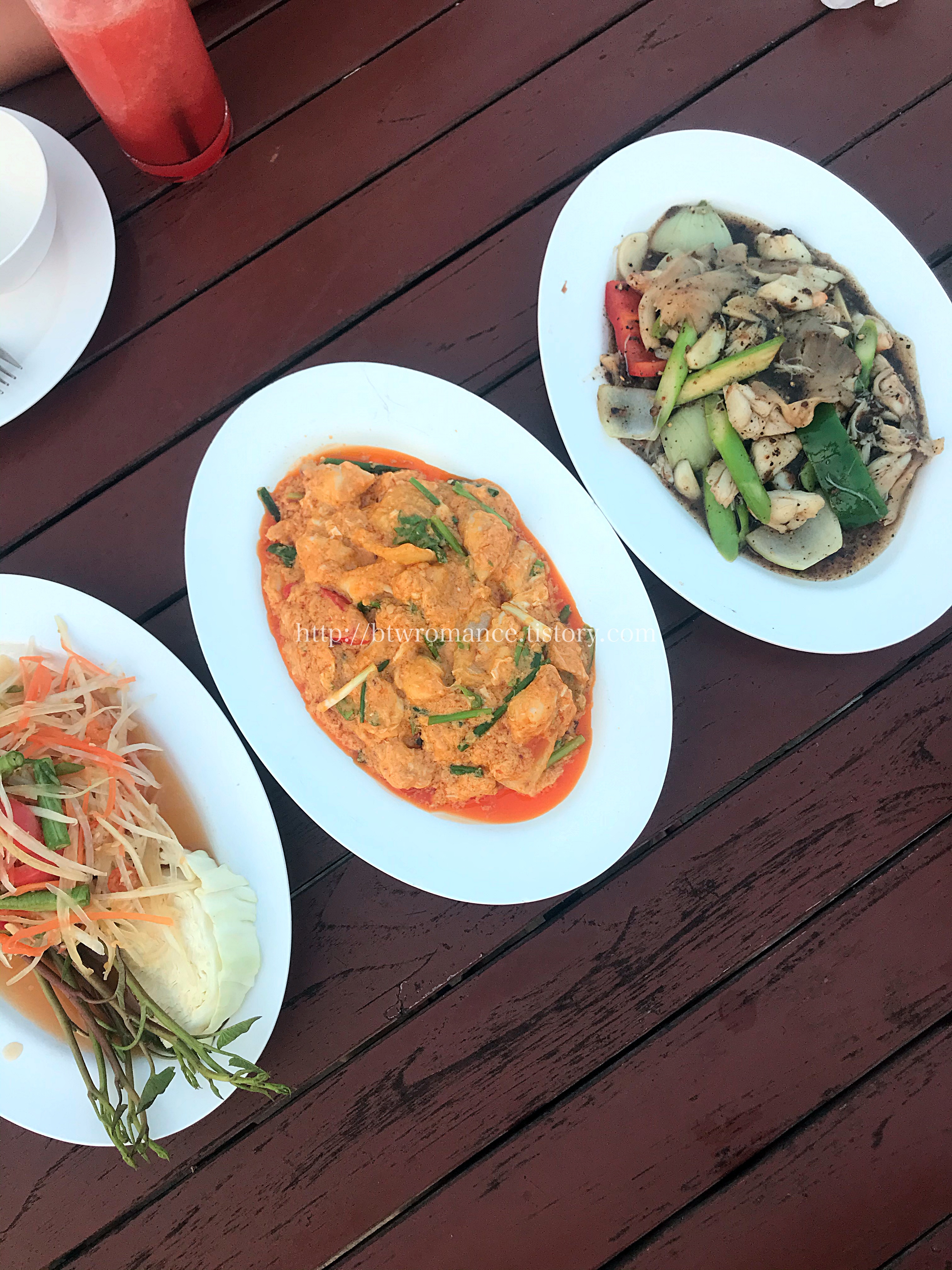 우리는 이곳에서 통생선구이와, 블루크랩쏨땀을 먹었다.
