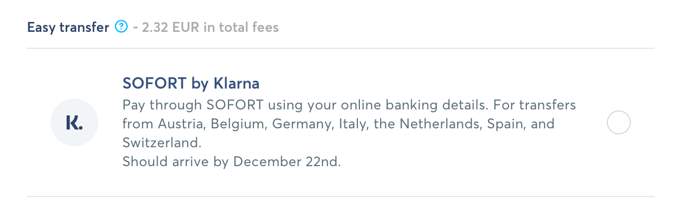 Klarna 라는 독일의 플랫폼이 있다. (독일 뿐 만 아니라 오스트리아, 벨기에,이탈리아, 네덜란드, 스페인 그리고 스위스에서도 가능한 플랫폼)이 플랫폼을 이용하면, 독일 나의 계좌에서 실시간 계좌이체를 할 수 있다.