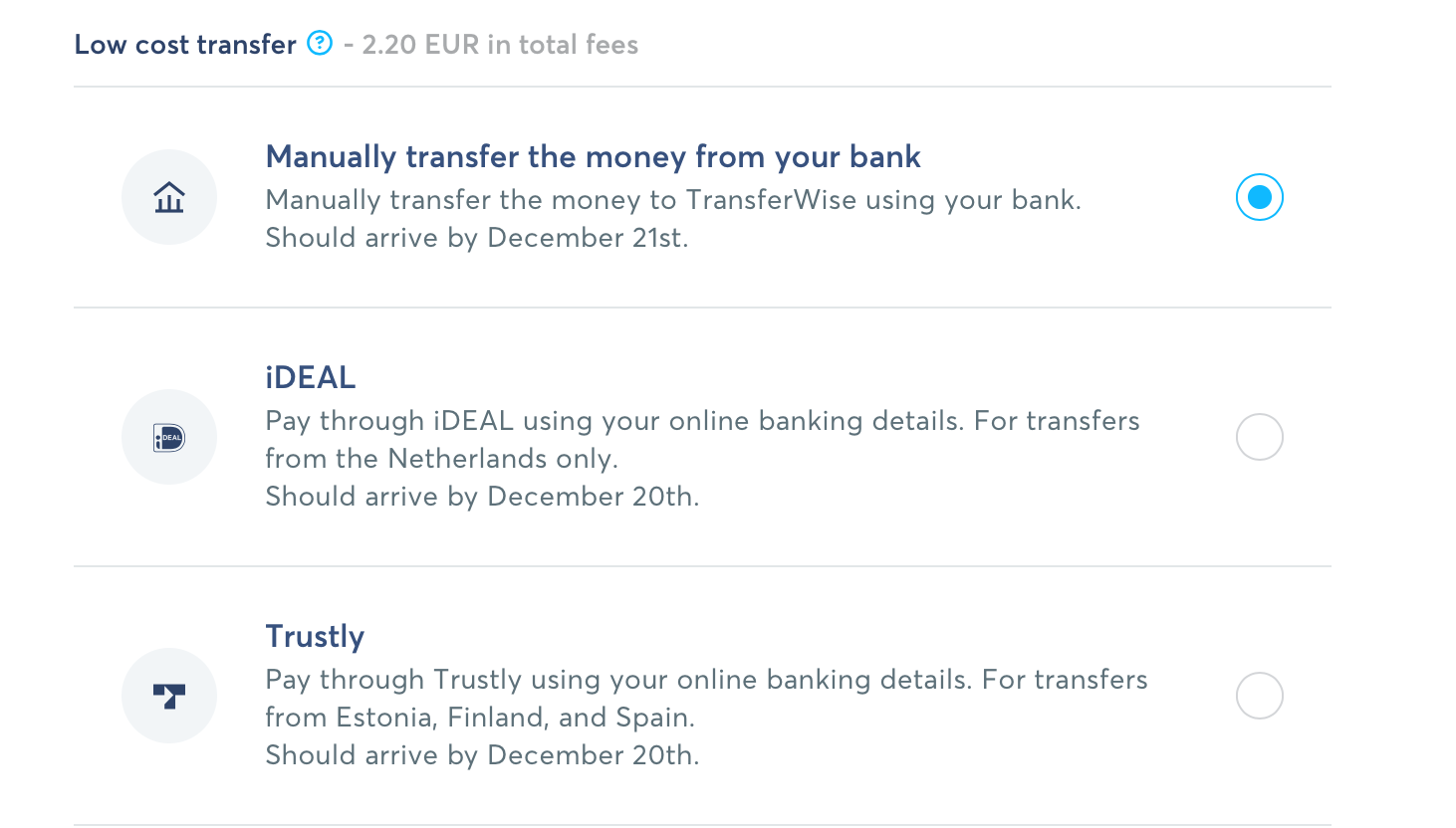 그 다음엔 내 돈(유로)를 어떻게 보낼지를 골라야한다.