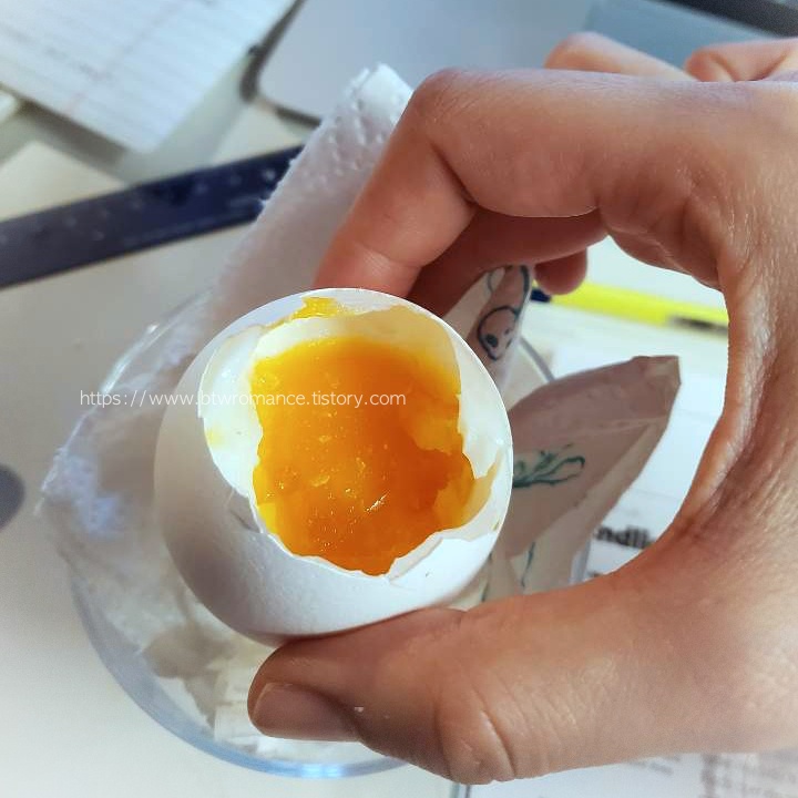 나는 노른자가 거의 액체상태인 반숙으로 계란을 퍼 먹을 거기 때문에