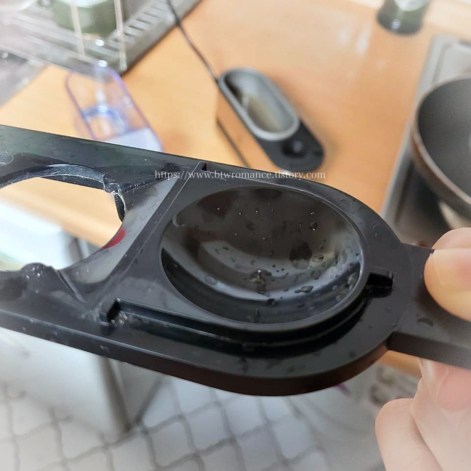 계랑컵에 채운 물은 이렇게 기계 바닥부분에 부어준다.