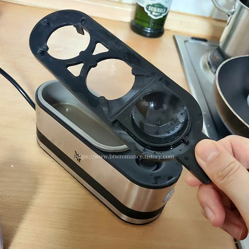 원하는 계란 상태에 따라 저 컵에 물을 담아서 기계에 넣어주면 된다.