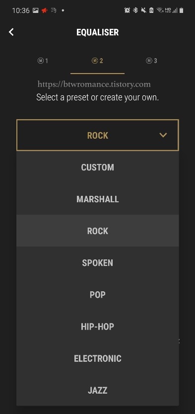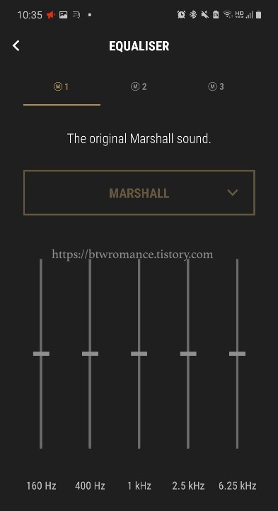 이퀄라이저를 설정할 수 있다. 1번은 오리지널 마샬 사운드 버전,