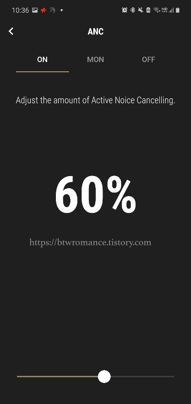 그 외 마샬 어플을 통해서 노이즈 컨트롤링 기능의 퍼센테이지를 내가 스스로 설정 할 수가 있다.그냥 노이즈 캔슬링 기능이 ON/OFF 로 나눠져 있는것이 아니라이 기능을 켰을때 몇 퍼센트정도의 노이즈캔슬링을 원하는지 내가 스스로 설정할수있다니 !