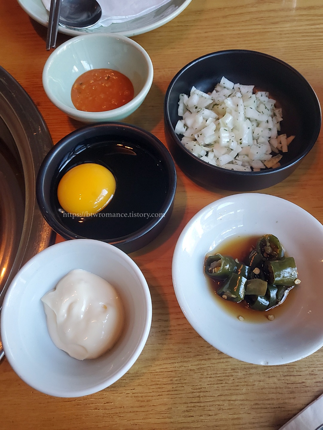 + 토르티야와 파김치 그리고 잘게 썬 양파, 간장계란소스, 갈릭마요네즈는