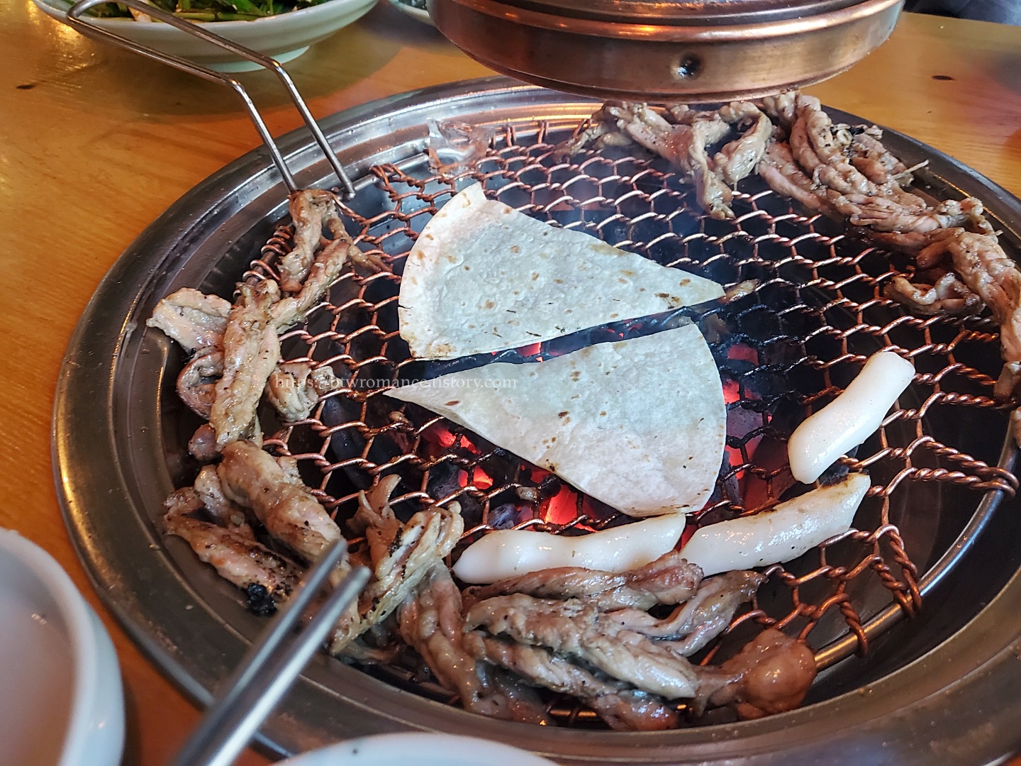 나는 그러자마자 우선 토르티야를 불판에 올려 구웠다.