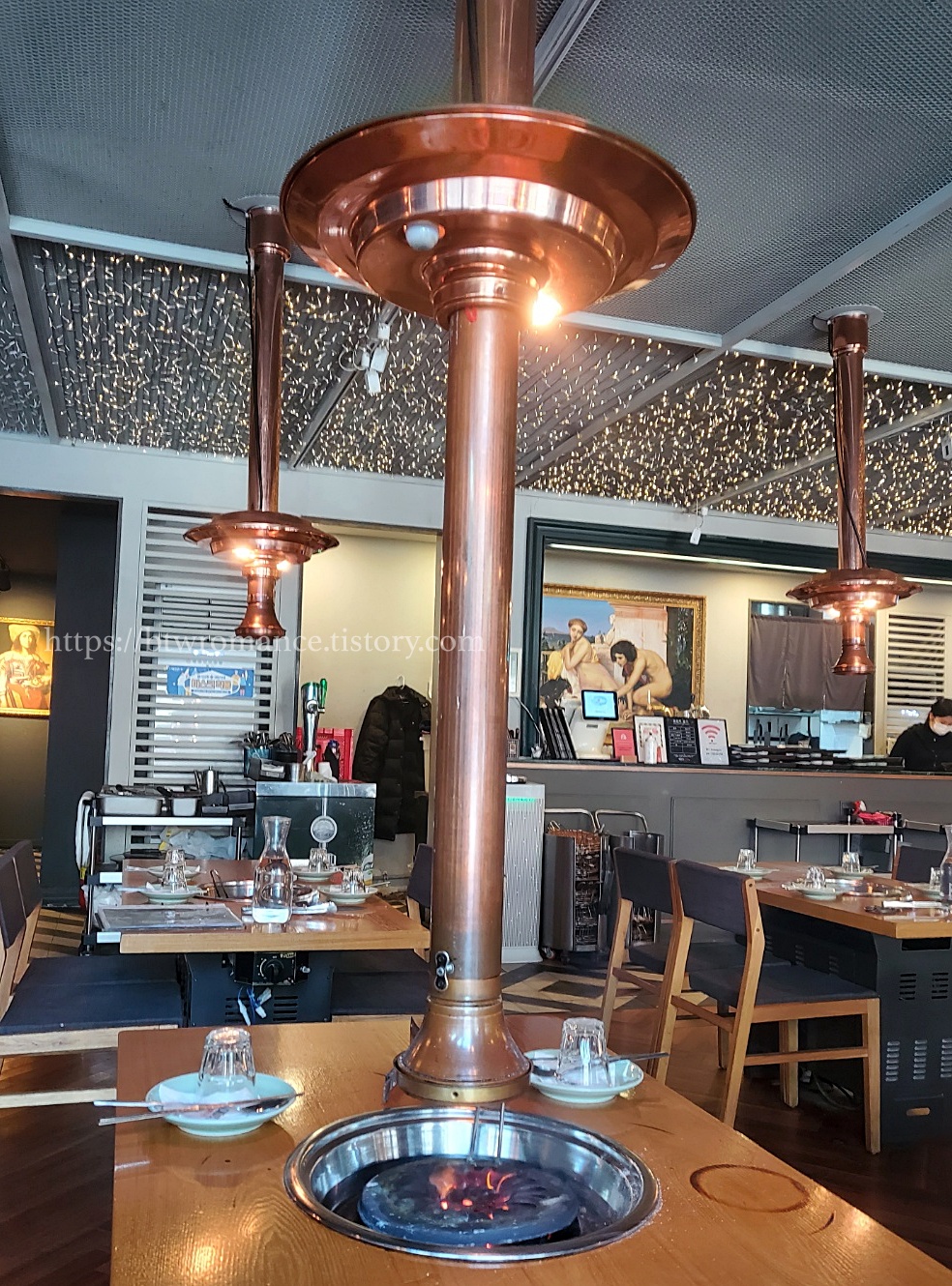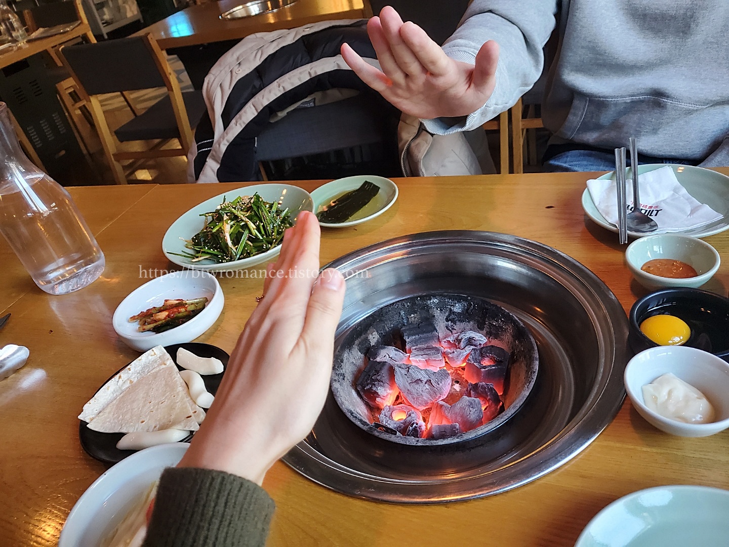 주말 낮에 갔더니 우리 밖에 없어서 조금 추웠다 ! 그래서 고기가 구워지기 전 잠시 손을 녹였다.