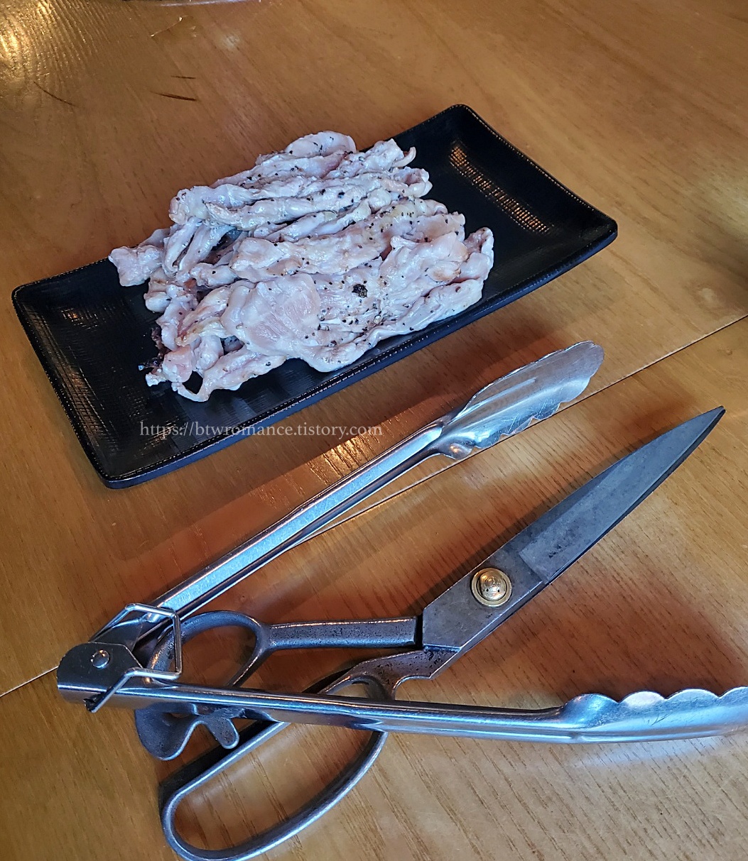 우리는 닭목살 소금구이 2인분을 주문했다.