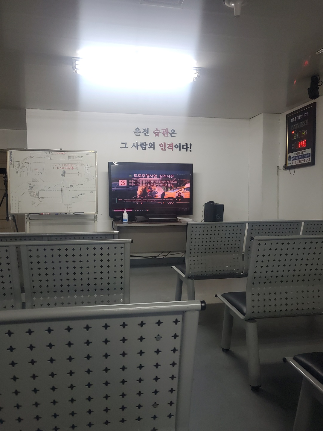 학원에가서1층에서 카드 찍고 도로주행 시험 대기실 (도로주행 대기실은 지하2층임.)에서 대기하고, 1시가 되자, 1시 도로주행연수하는 분들 부터 불러 나가고, 그다음부터 감독관이 이름을 부르고 신분증 확인을 시작했다. 대략 1 감독관 마다 3명정도의 학생 시험을 주관하는것 같았다.나는 3명중 마지막 순서였고 약 1시간정도 대기해야 한다고 하셨다.