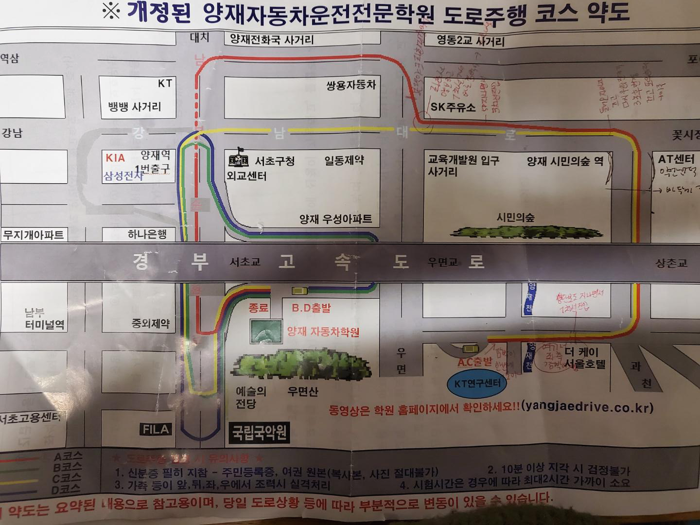 빼고는 양재역 부근에선 사실 더이상 차선 변경을 할 일이 없기 때문에, 초반에 차선변경과 우회전에만 신경을 써주면 아주 나쁜 코스는 아니다.