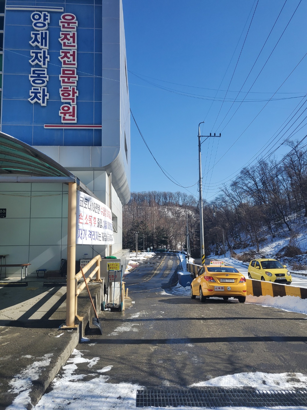 솔직히 너무 떨리고 자신이 없어서 (양재도로에서 평일에 도로주행은 솔직히 도로사정에 의해 합격률이 좌우된다고 생각. 학생 능력보다도..) 눈도 내린 김에 차라리 취소되었으면~ 했지만, 아침까지도 취소 연락이 없길래 긴장하며 학원으로 향했다.