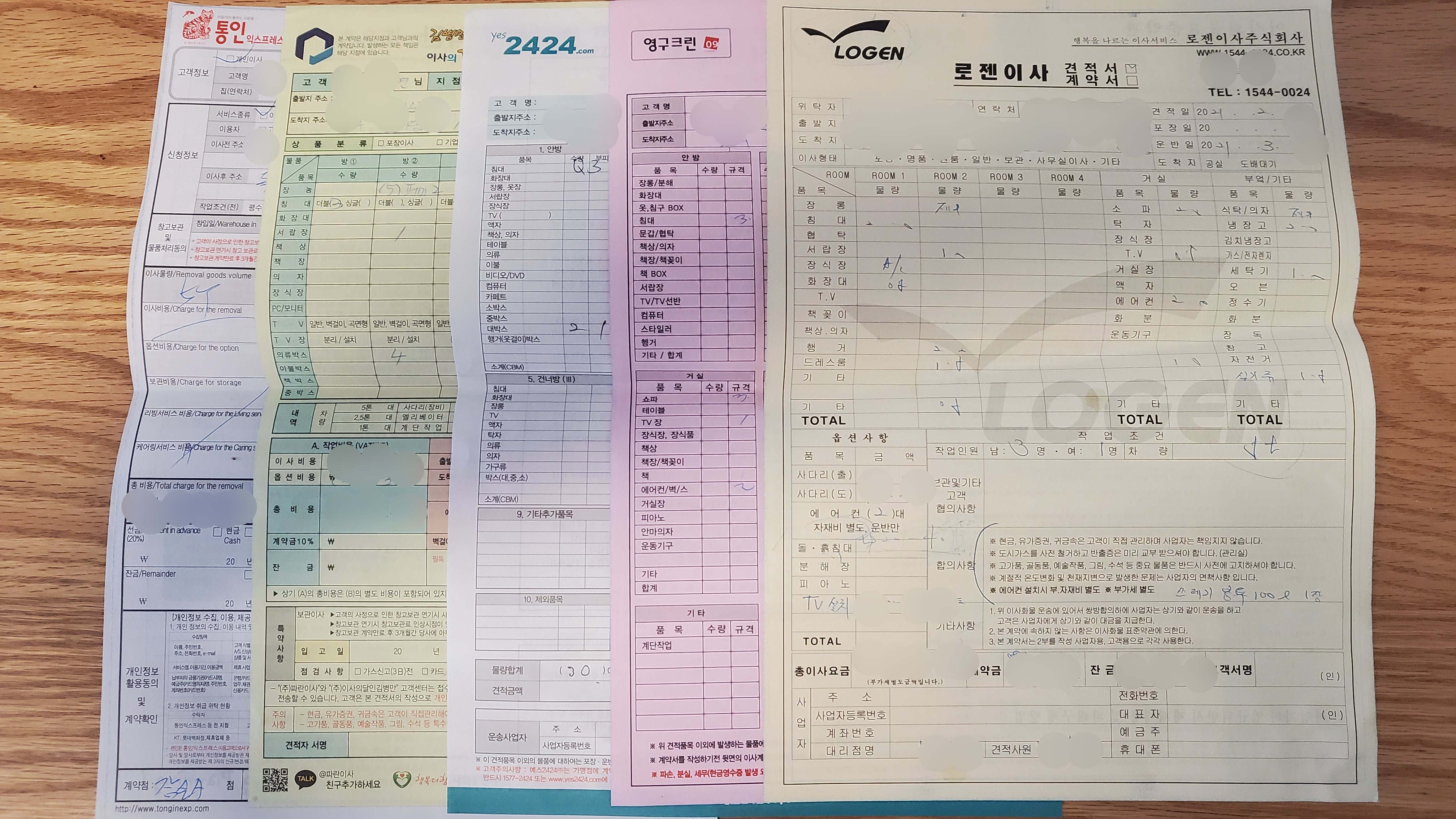 내가 느끼기에 대형 포장이사 회사 5곳과 방문 견적을 받았다.