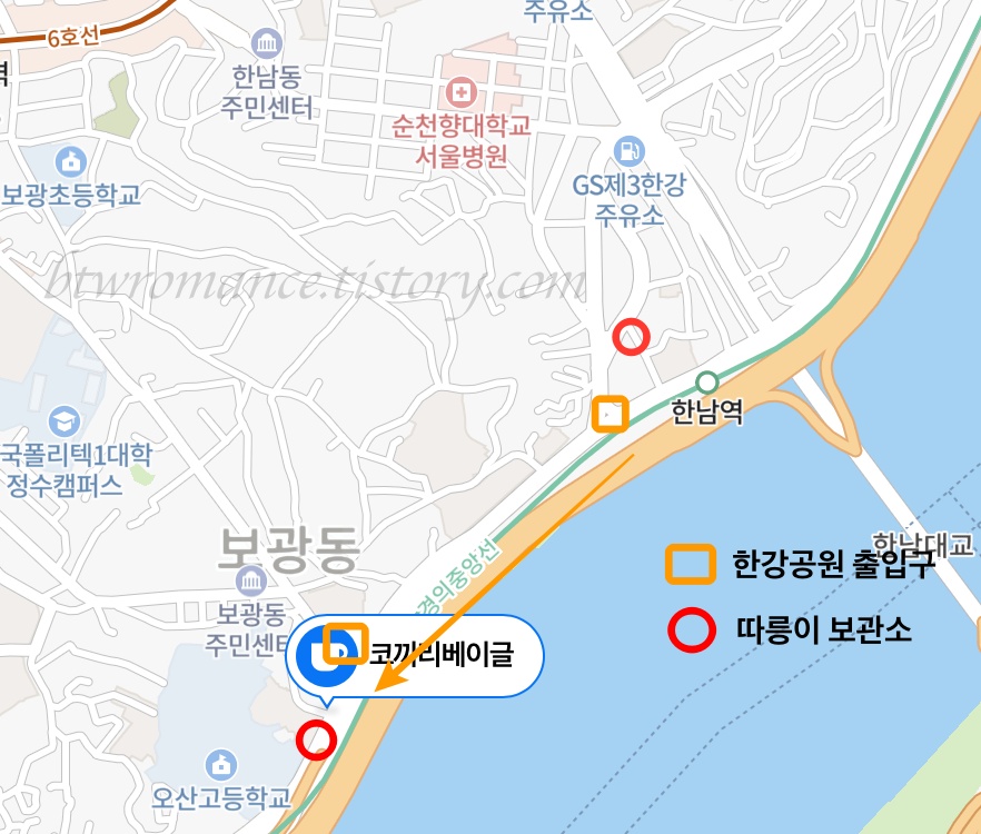 코끼리 베이글은 한강공원 [보광 나들목]에서 나와서 길 만 건너면 되는 위치에 있고