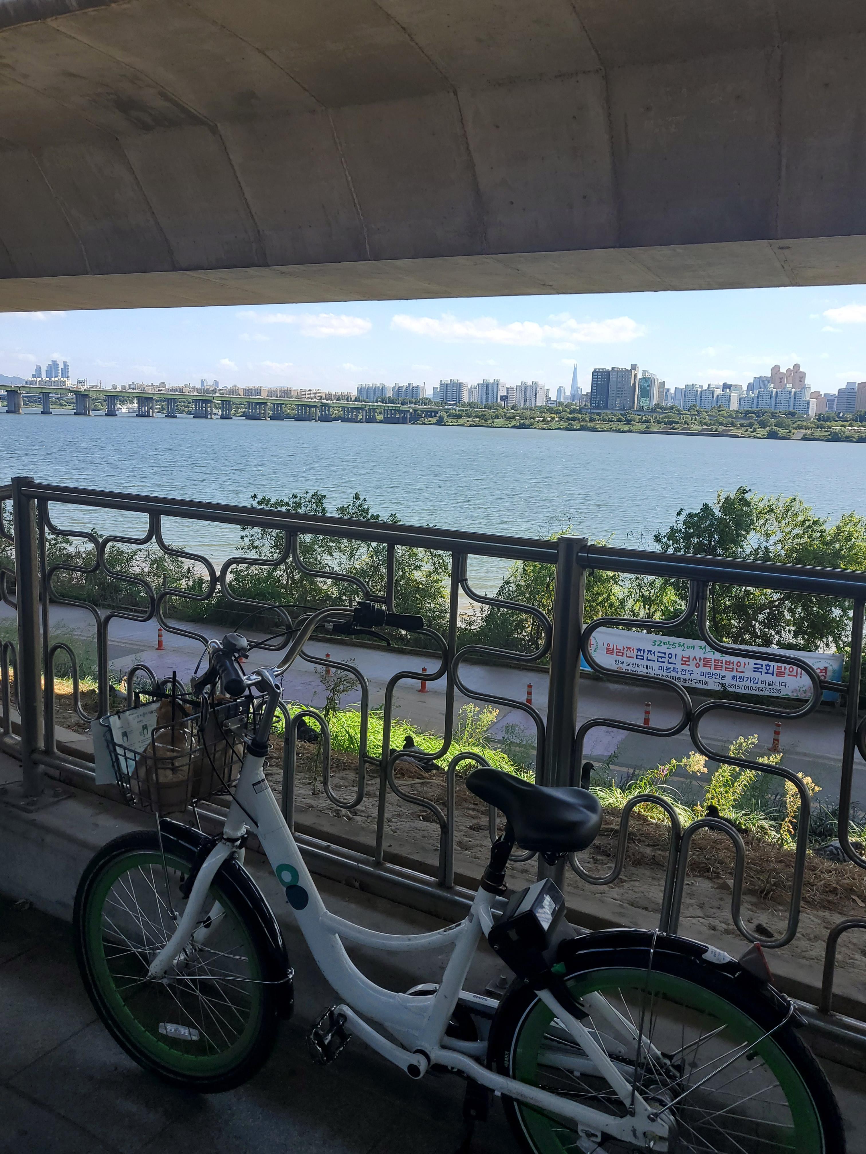 그곳에 차를 대고, 따릉이를 빌려 한강을 바라보며 라이딩을 좀 하고