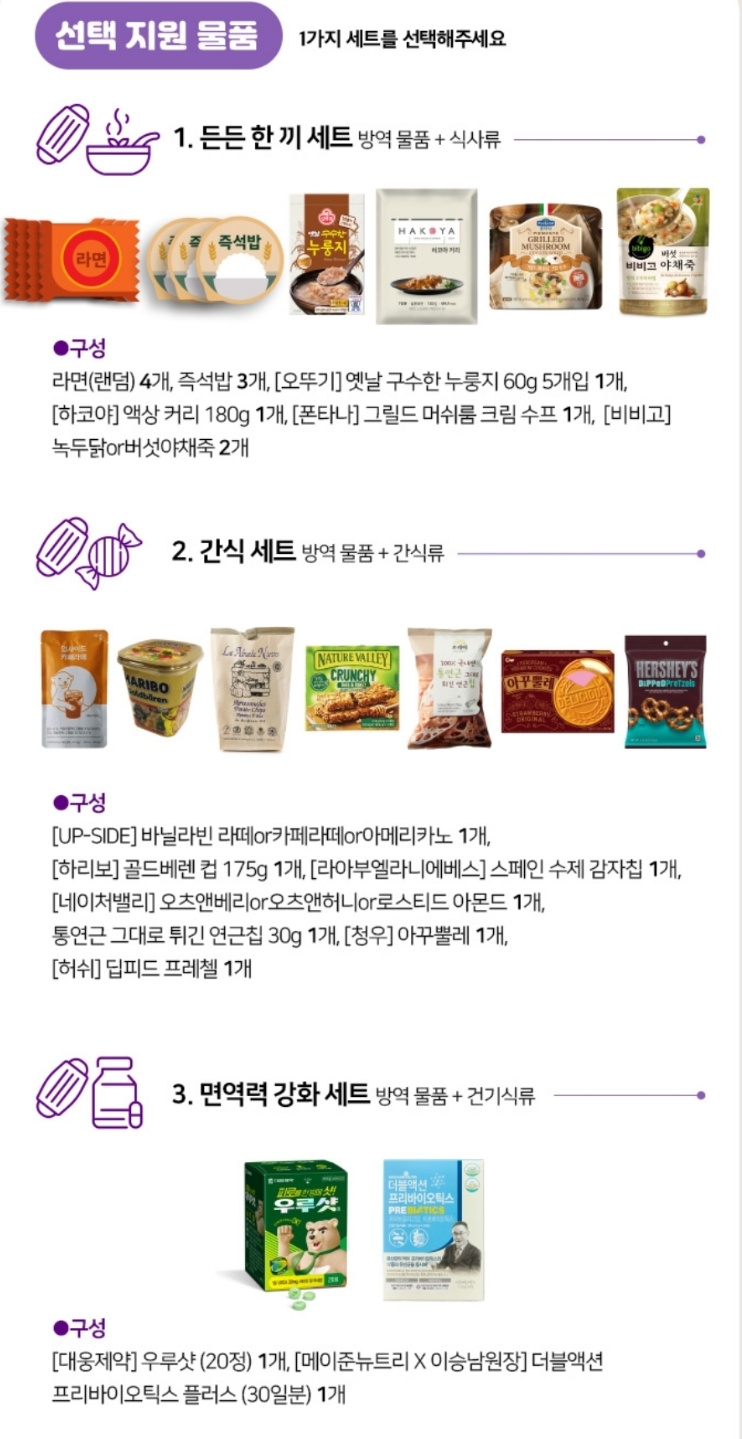 ※ 선택 지원 물품에 나열된 물품이 정확히 배송된다.