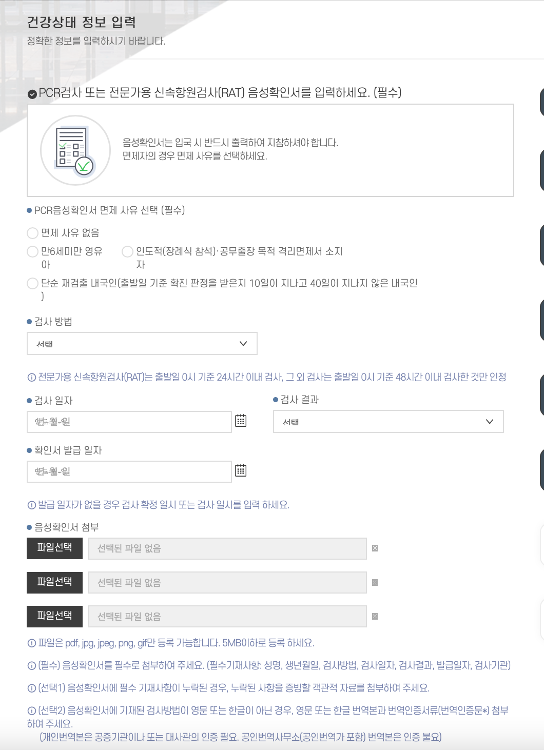 코로나 음성확인서를 업로드한다.