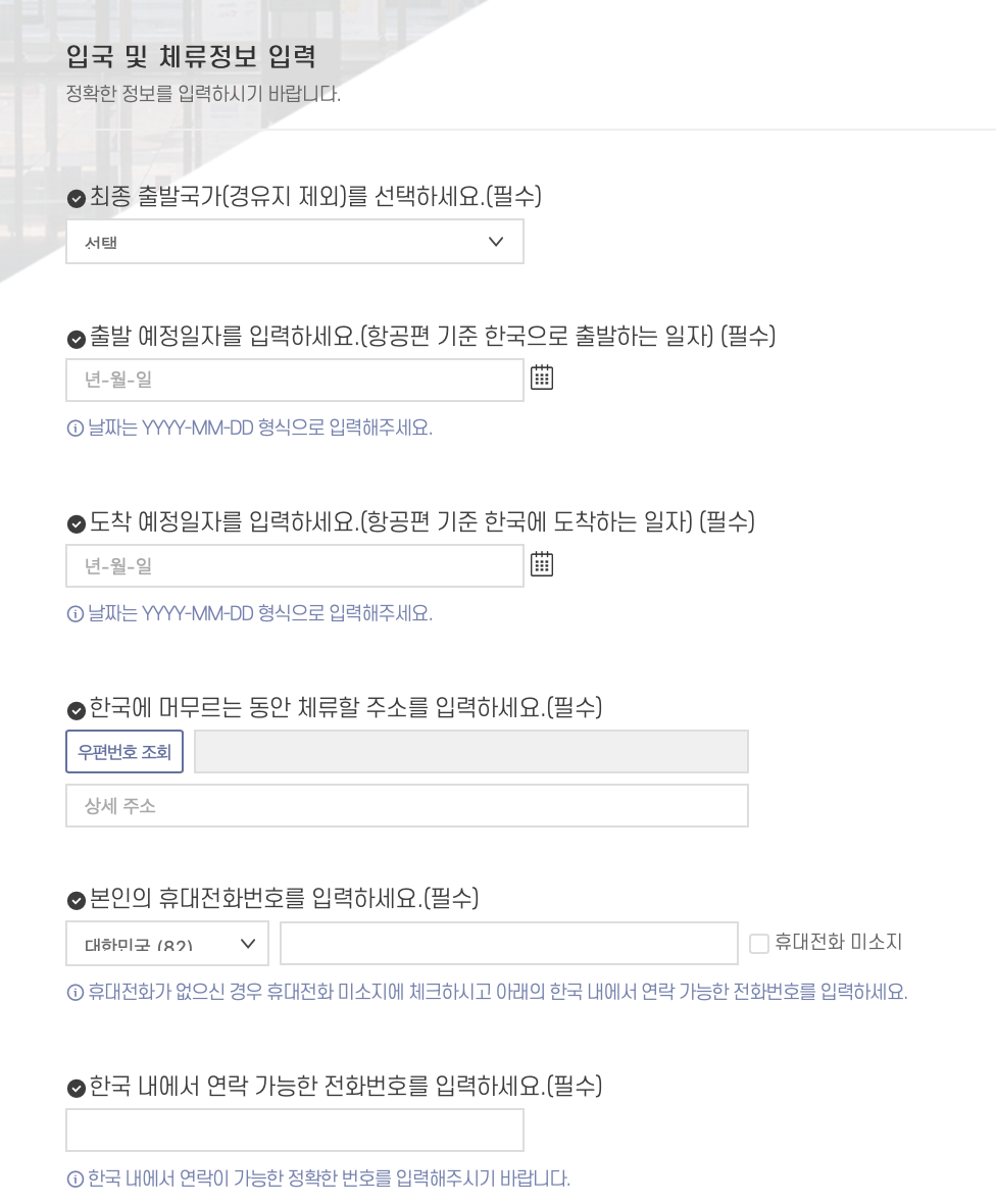 코로나 음성확인서가 필요하기 때문에 한국귀국 24시간전~~비행기탑승전 사이 ,시간 이 될 때 입력 하면된다.