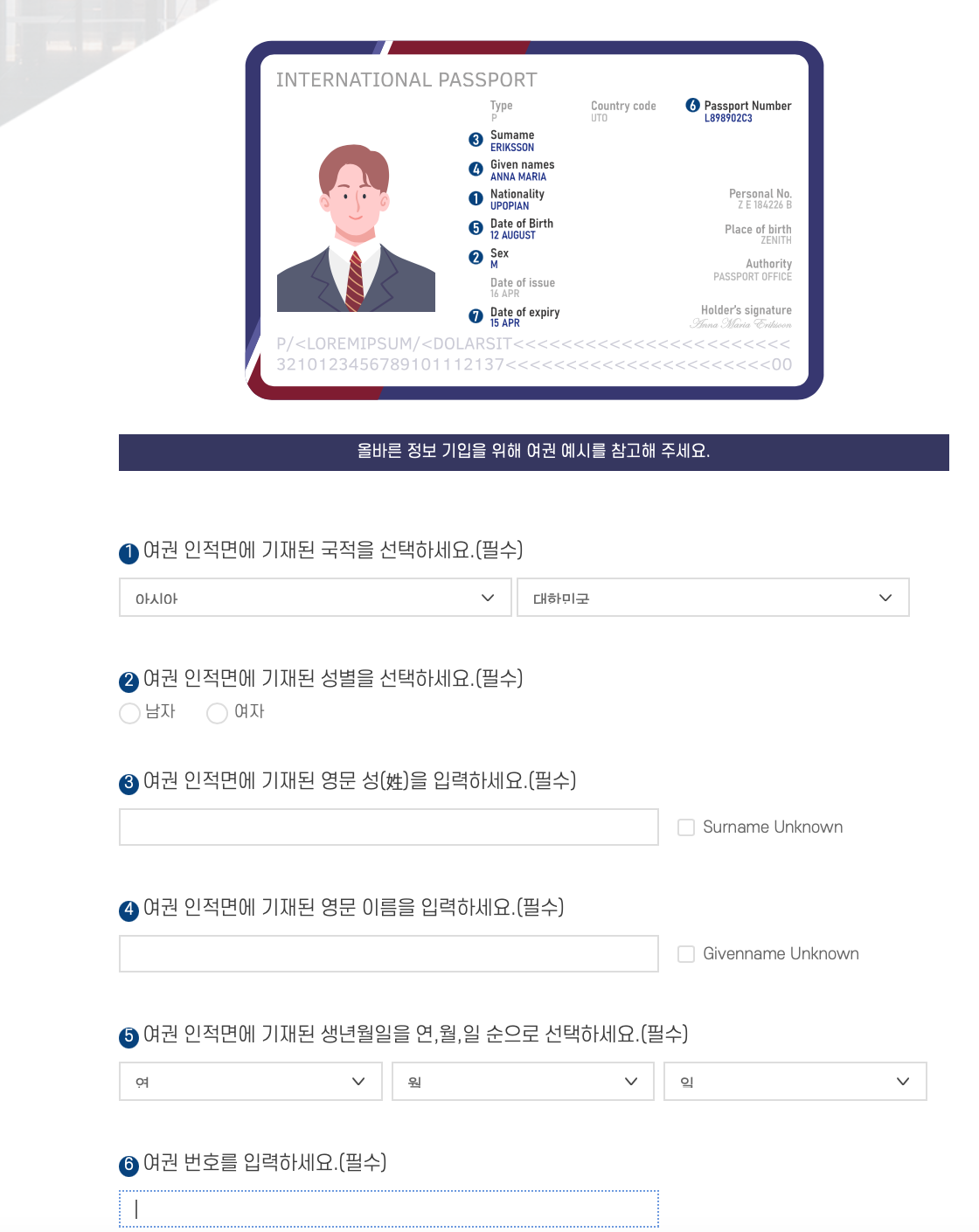 4. 여권정보를 기입한다.