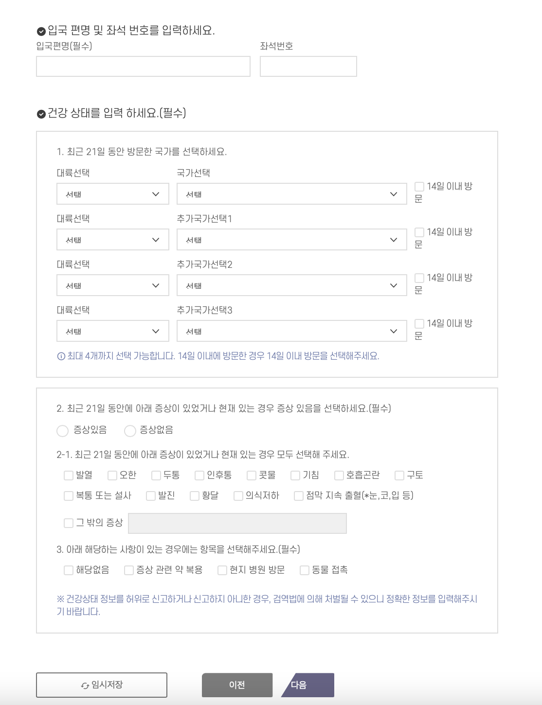보통은 노란색 '건강검진질문서' 와 '코로나 음성확인서' 등의 서류를 챙겨 검역을 거치고